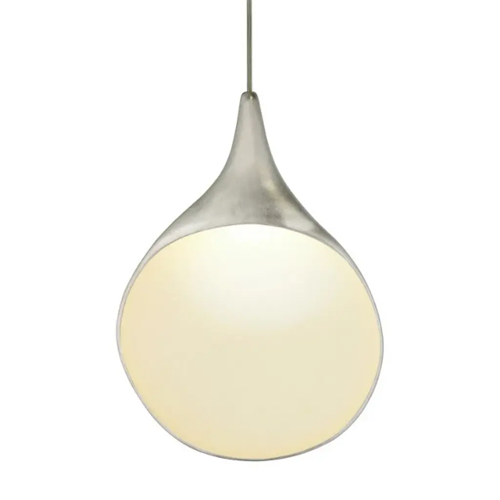 The distinctive Elle 11 Pendant is composed of an outer tear-drop trans gray glass shade, complemented perfectly with a blown opal glass sphere. The inner opal conceals the light source, while both diffusing and directing downward the output the the light source. The pleasing play of light and dimension through the Elle makes for asoothing optical affect. The cord pendant fixture is equipped with a 10' SVT cordset and an low profile flat monopoint canopy. These stylish and functional luminaries are offered in a beautiful Satin Nickel finish.