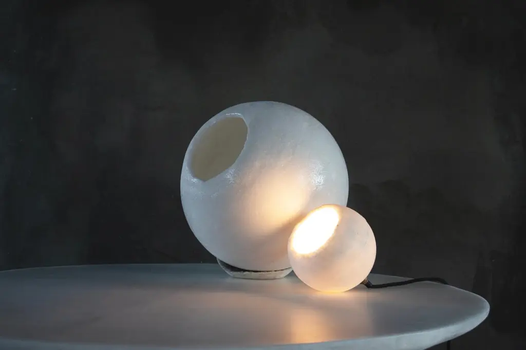 Ellipse Lamp by Roxane LahidjiDimensions: D 35 x H 40 cmMaterial: Marbled saltsA unique award-winning technique developed by Roxane LahidjiAward winner of Bolia Design Awards 2019 and FD100 and present in the collections of the Design Museum Gent.Lahidji's marbled salts creations in the press:Elle Decoration NL :DDW17- Jan/Feb 2018Object Rotterdam - Feb/March 2018DeStandaard Magazine - June 2018Elle Decoration UK- Sept. 2018Boek Boq - Architecture - Oct. 2018Why material matters - Oct. 2018Roxane LahidjiRoxane Lahidji is an alchemist as much as a designer. She seeks a reconnection to fundamental materials in objects of our daily lives by developing her own transforming and moulding methods. In terms of design, her intuitive methodology associates concepts with material symbolics and consumption or usage habits, which defines a dwelling function and a final shaping.Fascinated by precious surfaces and their story telling, she works in a constant research for meaning in patterns, textures and shades; focusing on liquid and powdered substances she melts, mixes, fusions into solid objects.With the deep concern of reconciliating production and sustainability, her design focuses on disregarded or cheap materials brought to a new life, while twisting low tech methods and traditional crafts techniques.Roxane Lahidji was born in Paris in 1992 and grew up in the French capitale before studying illustration and product design in Strasbourg (HEAR). After her Bachelor (with distinction), she pursued her research for new design values in Design Academy Eindhoven and graduated from the Social Design master department in June 2017.