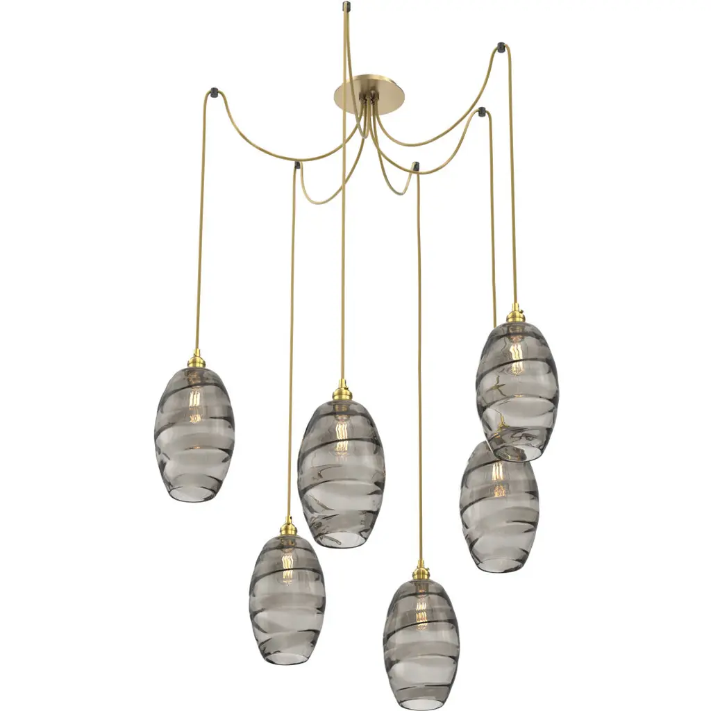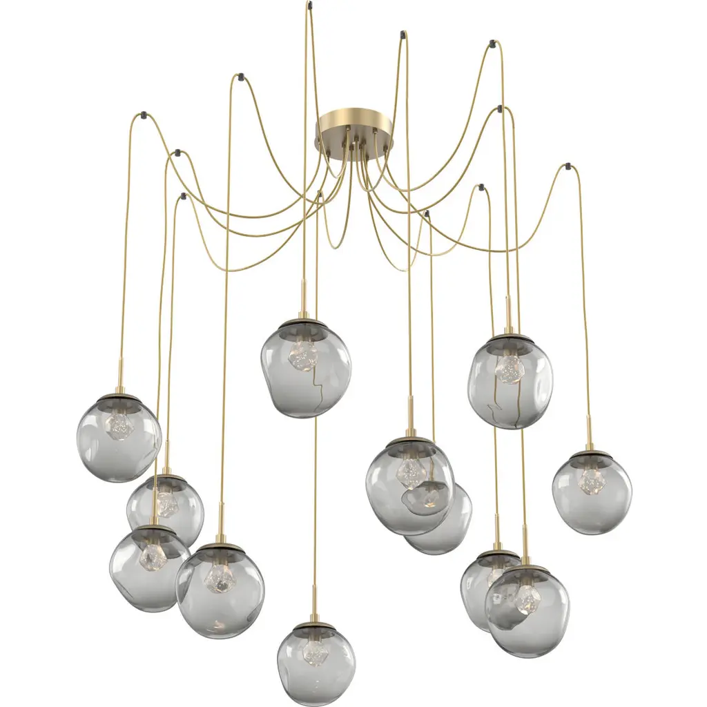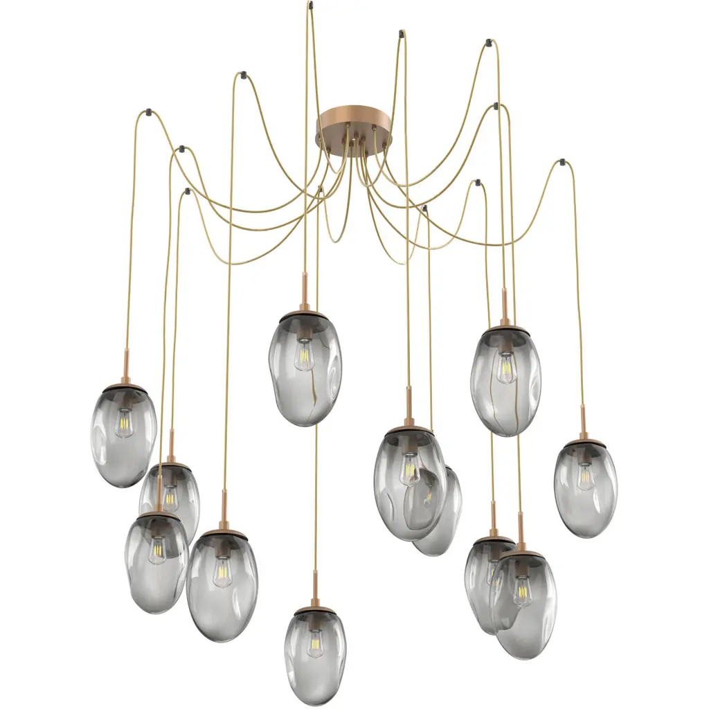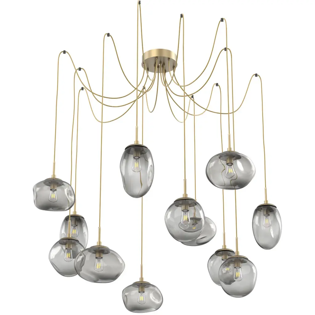 Ellisse 12 Light 15.5 Inch Gilded Brass Swag Multi-Pendant Ceiling Light In Smoke Optic