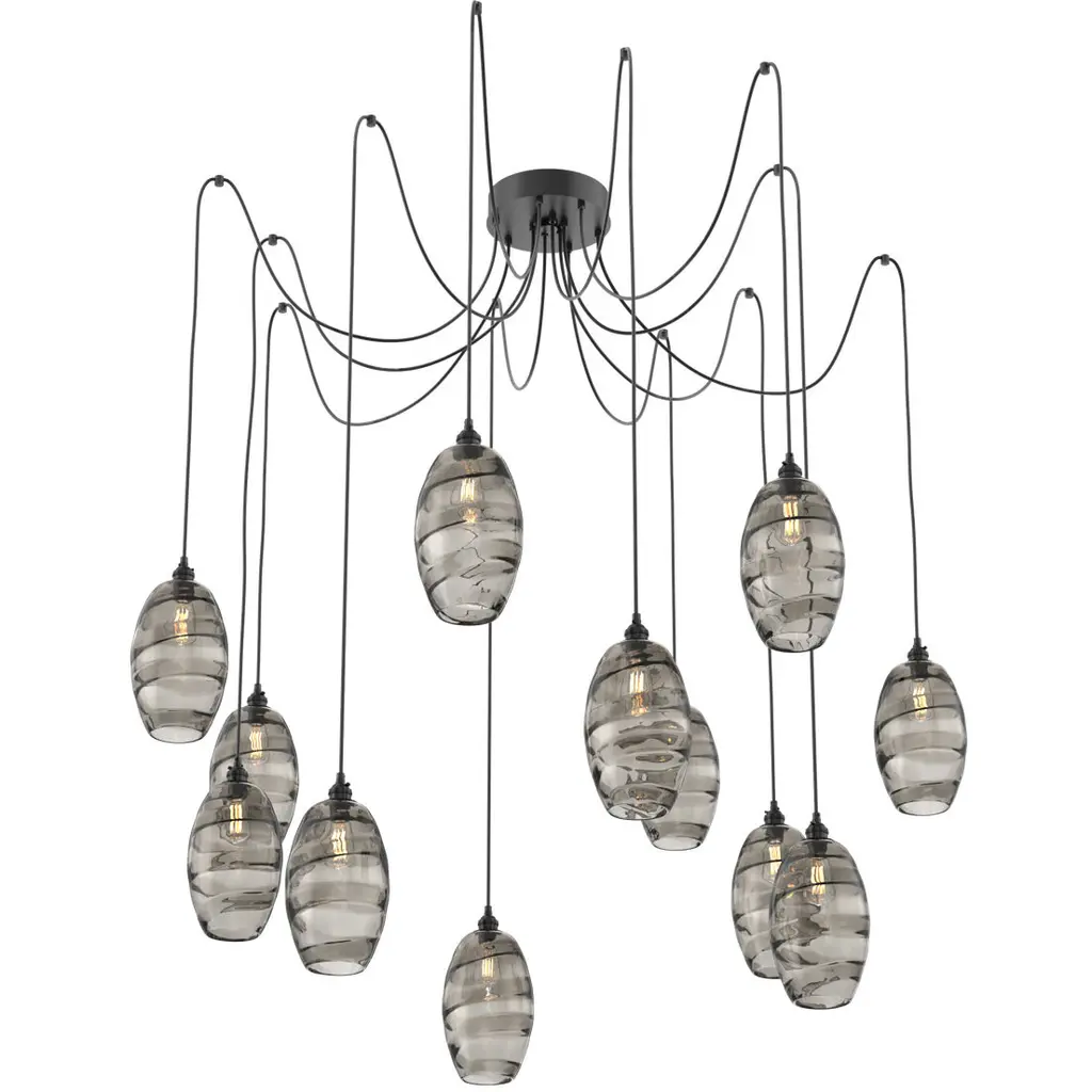 Featuring our popular artisan blown Ellisse pendants, this versatile chandelier style enables customization of the placement and height of each pendant. A ribbon of molten crystal glass added during fabrication creates a magical dance of light and color when paired with clear or vintage bulbs. Choose from several glass colors and finishes.