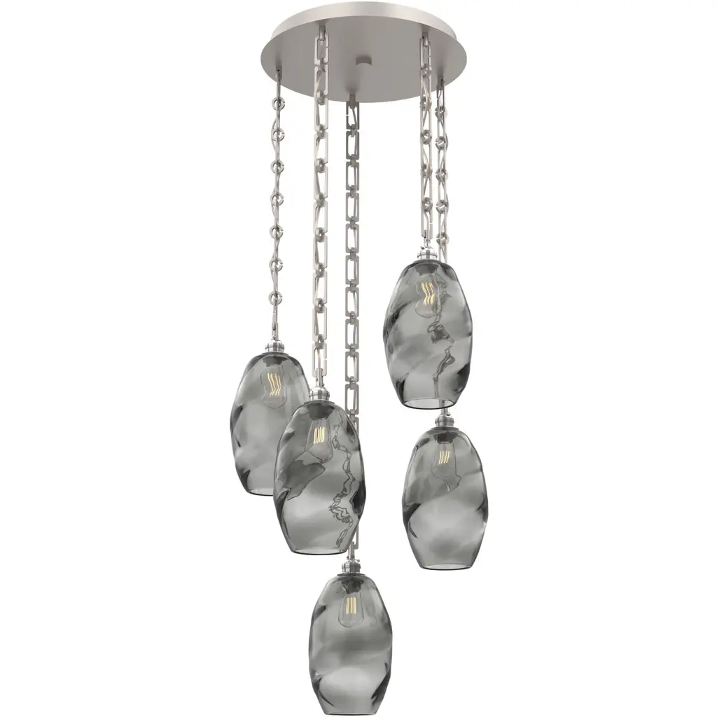 Handcrafted in North America by Hammerton artisans, the Ellisse Round Multi-pendant Chandelier showcases 3 elegant Ellisse pendants from hand-blown crystal glass and suspended from a round canopy by your choice of cloth-braided cord or artisan-forged chain. Each blown glass shade is expertly shaped to refract light in captivating ways, especially when paired with vintage-style bulbs. Suspension options include three vintage-inspired chain styles, all designed and crafted with exceptional attention to detail.