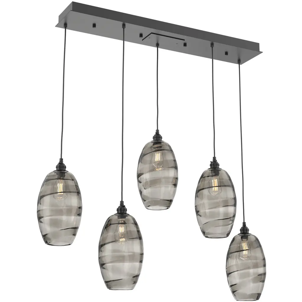 Ellisse 5 Light Flat Bronze Linear Pendant Ceiling Light In Ellisse Smoke, Multi-Port
