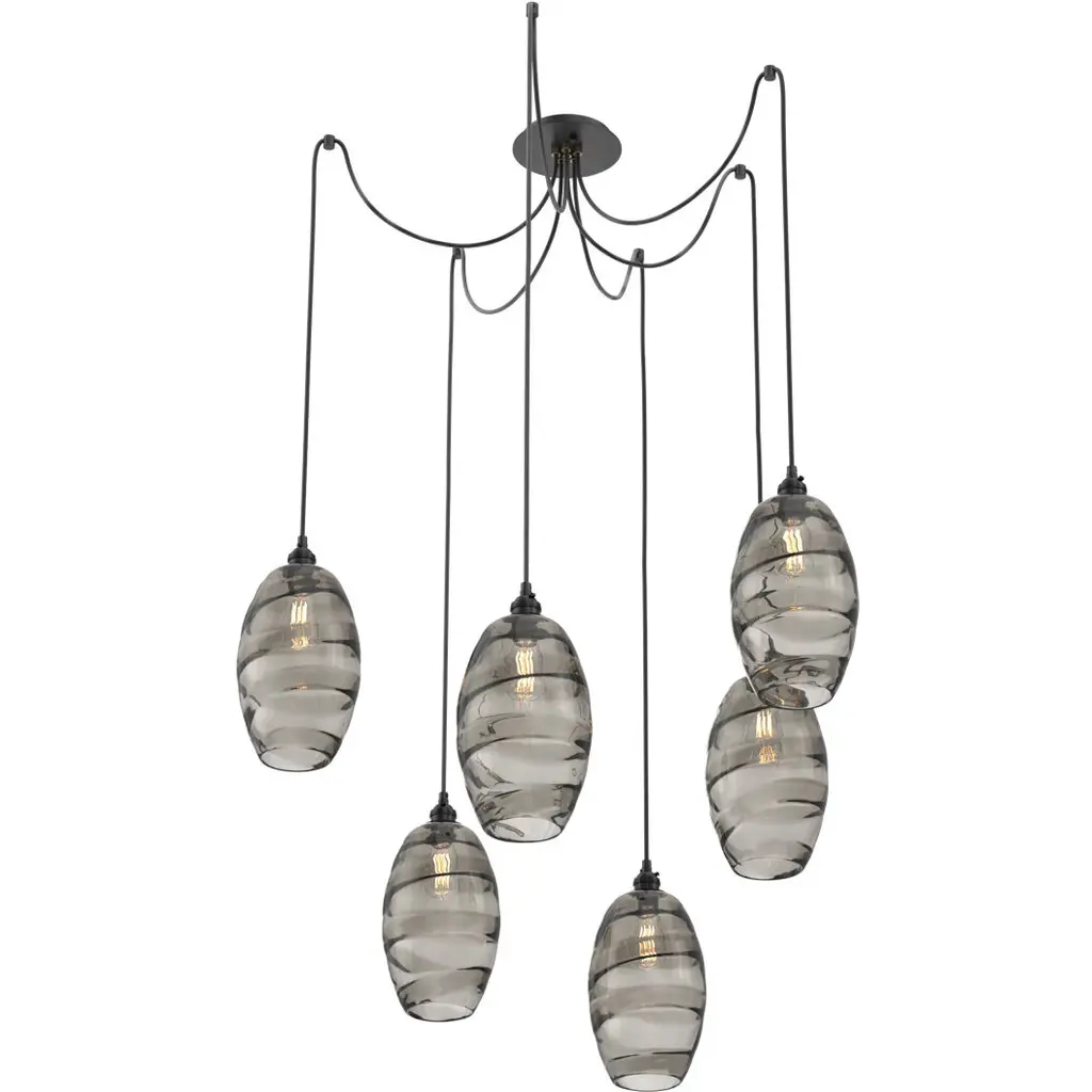 Ellisse 6 Light 15.5 Inch Flat Bronze Swag Multi-Pendant Ceiling Light In Smoke Optic