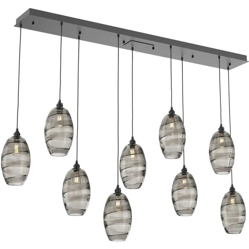 Ellisse 9 Light Beige Silver Linear Pendant Ceiling Light In Metallic Beige Silver, Ellisse Smoke, Multi-Port