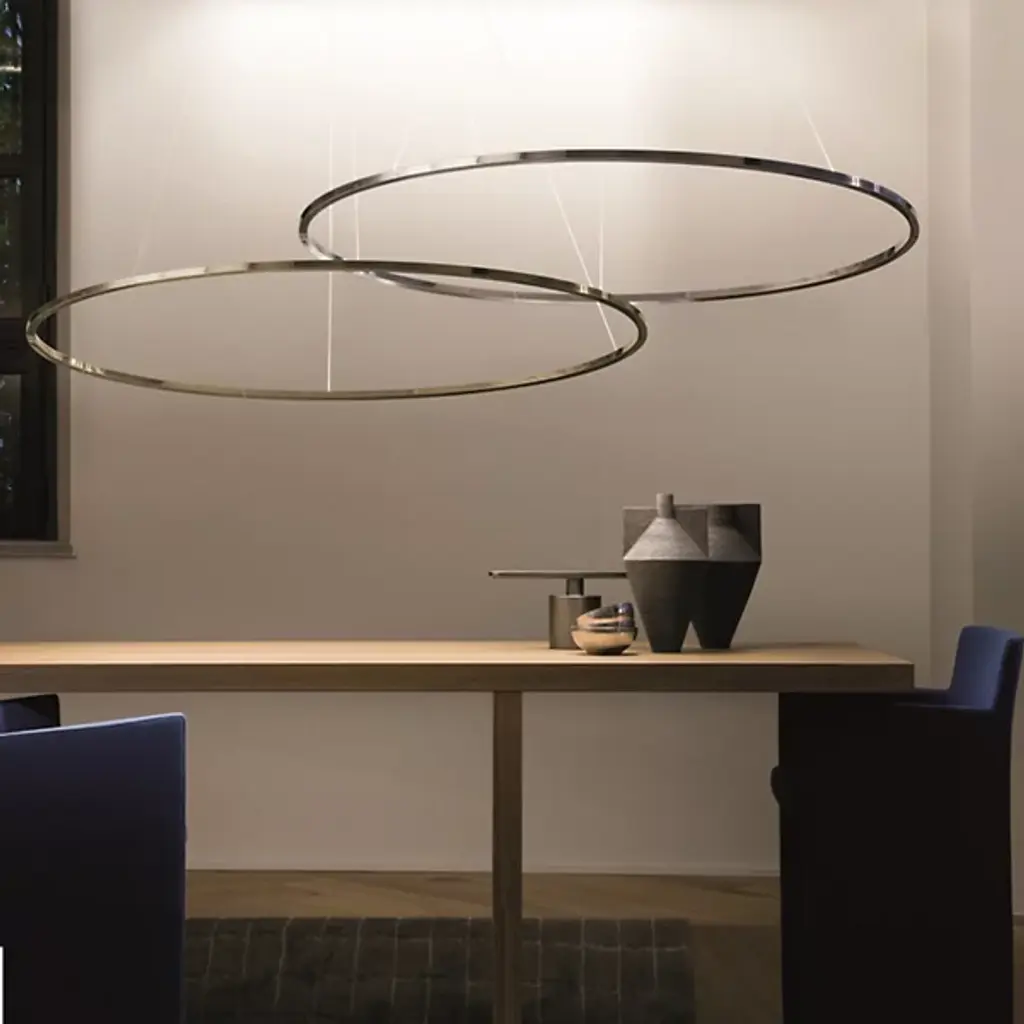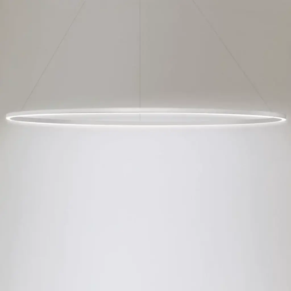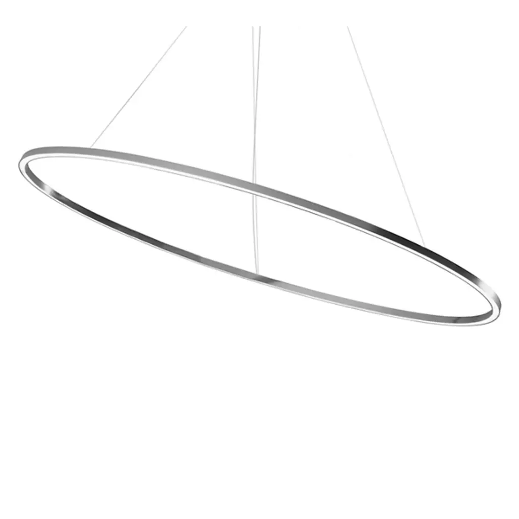 Inspired by the constellations in the sky, the Ark Ellisse LED Major Pendant by Nemo is a large ellipse-shaped structure that is able to create direct downlight or indirect uplight. The Aluminum ring is also lined with an opal diffuser to soften the array of light in either direction. The suspension style can also be altered to lower the Ellisse from the ceiling at an angle or with a flat horizontal style.