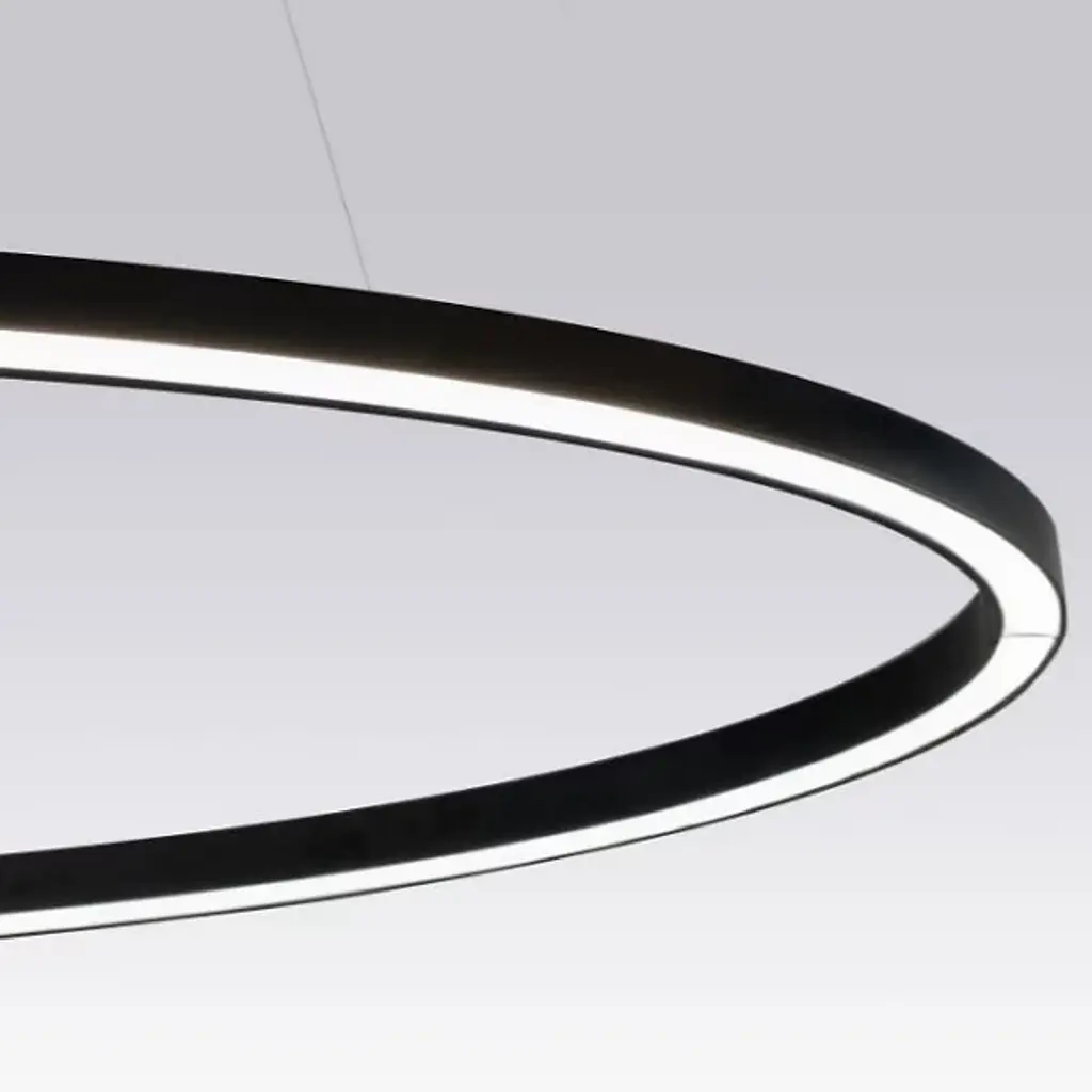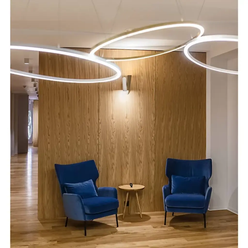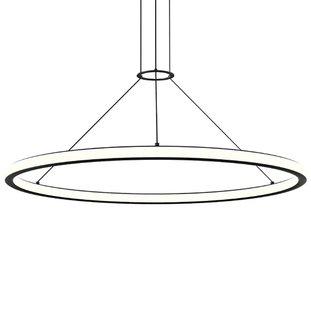 Inspired by the constellations in the sky, the Ark Ellisse LED Major Pendant by Nemo is a large ellipse-shaped structure that is able to create direct downlight or indirect uplight. The Aluminum ring is also lined with an opal diffuser to soften the array of light in either direction. The suspension style can also be altered to lower the Ellisse from the ceiling at an angle or with a flat horizontal style.