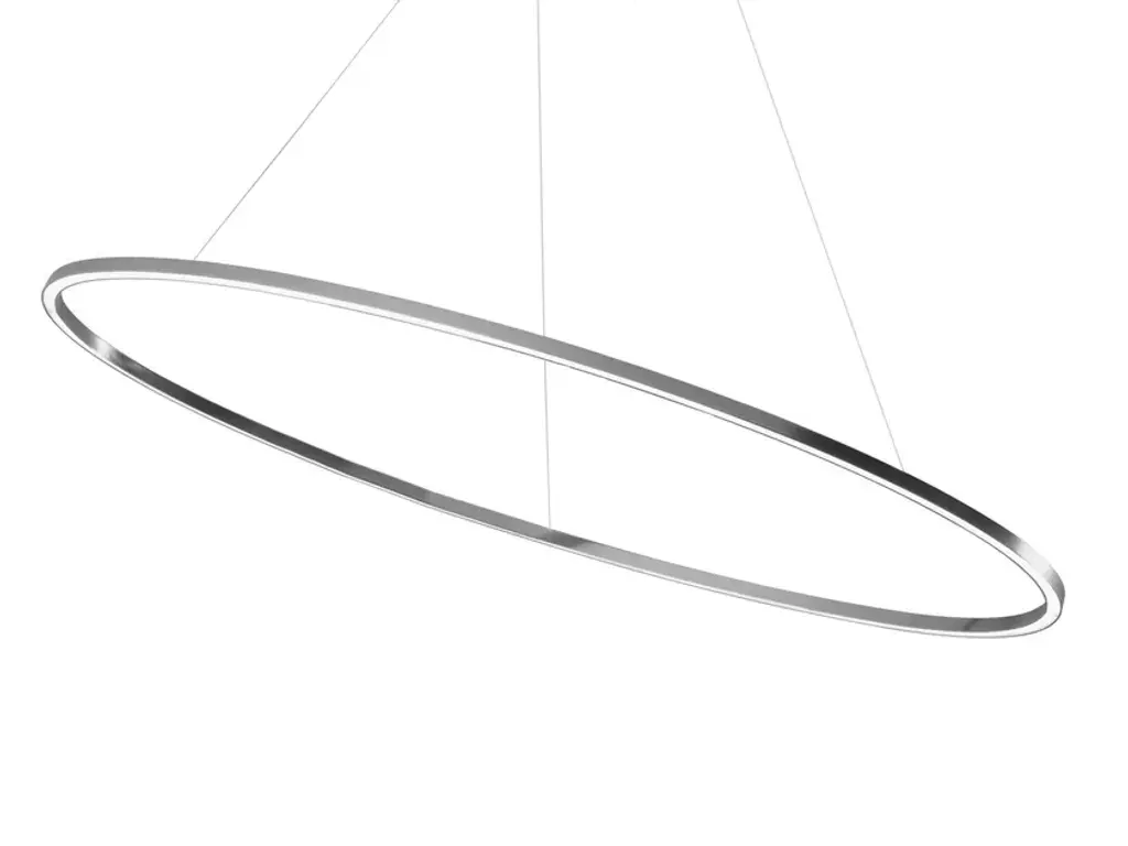 The Ellisse LED Minor Pendant from Nemo is an ellipse-shaped structure that is able to create diffused down or indirect uplight. The ring is composed of Aluminum, and is lined with an opal diffuser to soften the array of light. The suspension style can also be altered to lower the Ellisse from the ceiling at an angle or with a flat horizontal style.