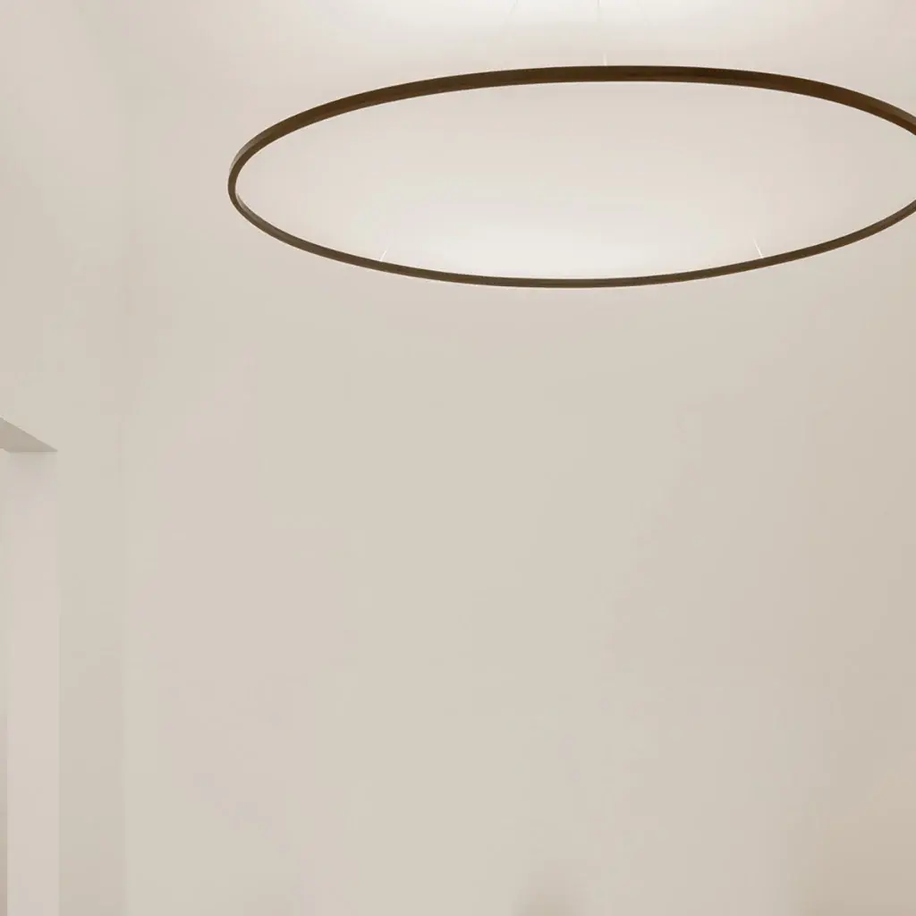 LED pendant lamp, available in five versions: major, minor, double, triple and mega. Widespread direct or indirect lighting. Extruded aluminum, painted in matte white or black, polished, or glossy gold anodized. Opaline diffuser. Ellisse is manufactured through a proprietary technology to combine the extruded bars (patent pending). Features