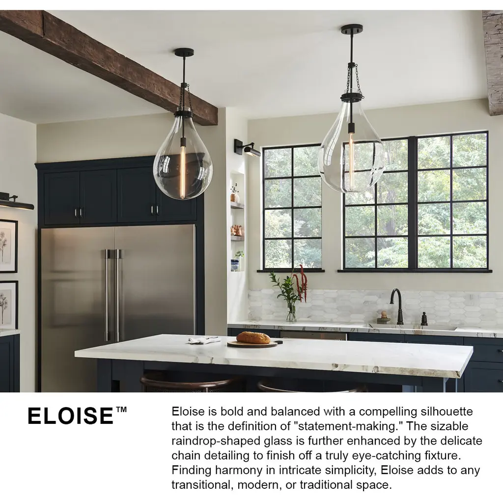 Eloise is bold and balanced with a compelling silhouette that is the definition of “statement-making.” The sizable raindrop-shaped glass is further enhanced by the delicate chain detailing to finish off a truly eye-catching fixture. Finding harmony in intricate simplicity, Eloise adds to any transitional, modern, or traditional space.