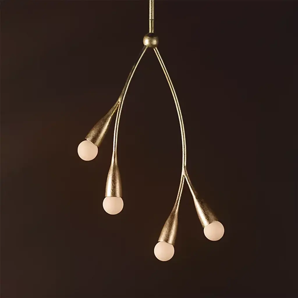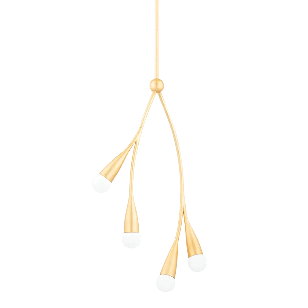 The Elsa Pendant by Mitzi – Hudson Valley Lighting brings the loveliness of the natural world to your home. A canopy at your ceiling allows a slender downrod to extend before splitting into a pair of stems, each forming two bloom-like cylindrical encasements. Each casing holds its own globe of glass, giving you a total of 4 lights per single pendant. Designed by Eny Lee Parker, the eye is drawn to the visual presentation of hanging, plant-like embellishments that appear to rest daintily in midair. The pendant’s incandescent bulbs project bright light throughout your environment while maintaining a lavish sensibility.