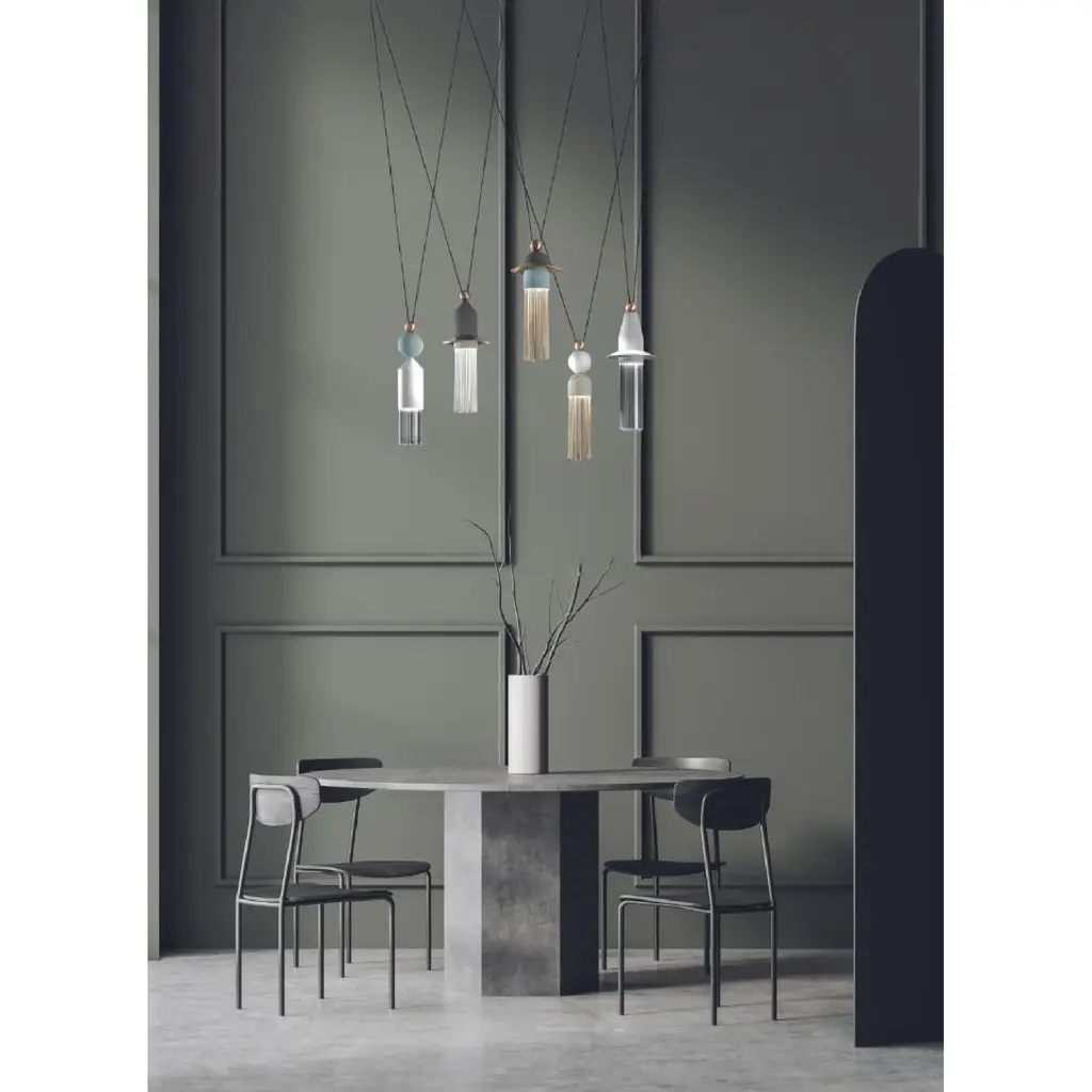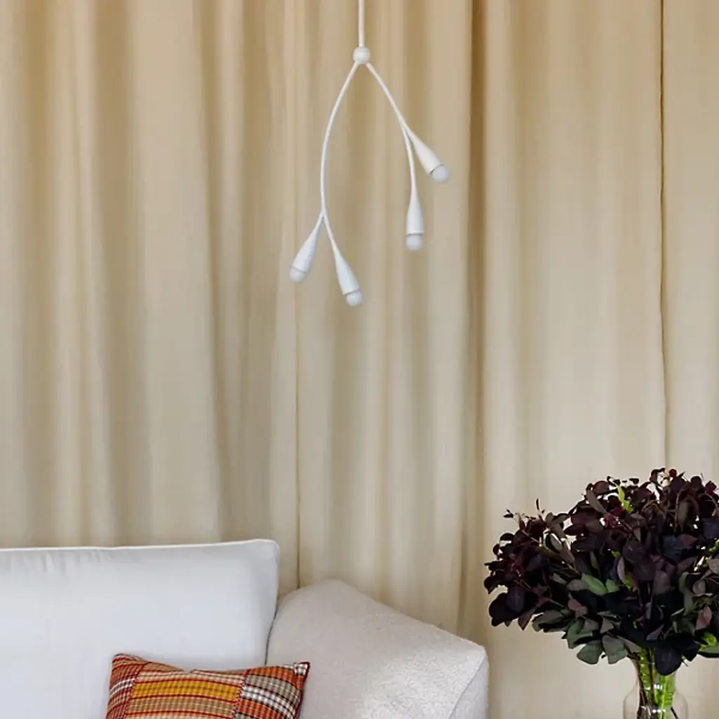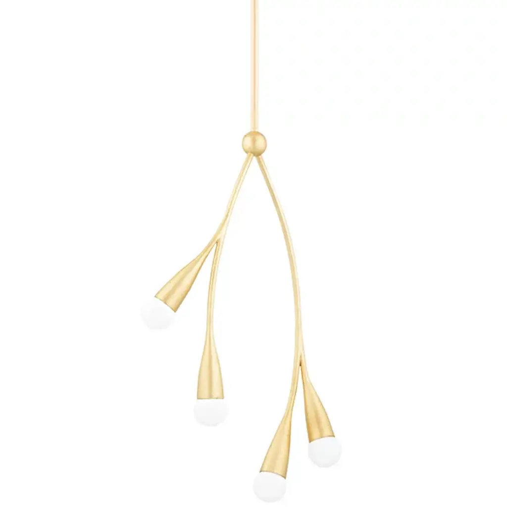 The Elsa Pendant by Mitzi – Hudson Valley Lighting brings the loveliness of the natural world to your home. A canopy at your ceiling allows a slender downrod to extend before splitting into a pair of stems, each forming two bloom-like cylindrical encasements. Each casing holds its own globe of glass, giving you a total of 4 lights per single pendant. Designed by Eny Lee Parker, the eye is drawn to the visual presentation of hanging, plant-like embellishments that appear to rest daintily in midair. The pendant’s incandescent bulbs project bright light throughout your environment while maintaining a lavish sensibility.
