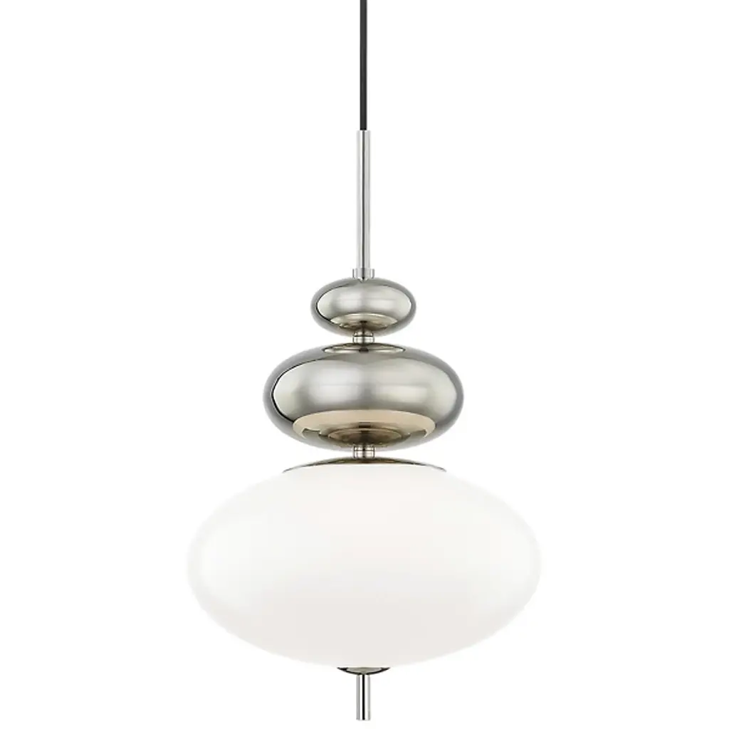 Mid-century modern inspiration meets sculptural sophistication. The Elsie 1-Light Pendant by Mitzi has a Steel frame with a Glass shade, with 3 ovals of gradually increasing sizes stacked on one another. The result is an elegant, sculptural hanging fixture that will look right at home in modern or contemporary settings, and pair beautifully with mid-century modern furnishings. Whether it's mounted in pairs or in a series, it has an ethereal feel that looks incredible in the hallway, living area, bedroom or foyer. The shade diffuses light to produce a warm, welcoming glow that looks good in every room.