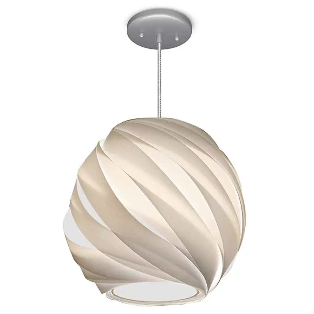 The Elume from Seascape Lamps is a striking, sculptural design, accompanied by swirling surface geometry realized in simple materials. Above it, a slim circle canopy and woven cable support the curving fabric shade below. Each pendant is made to order in Seascape’s California studio, with an interior shade that diffuses the warm glow through the swirling ribbon-style linens that comprise the exterior of the fixture, casting a gorgeous glow of light and fluid shadows in all directions.