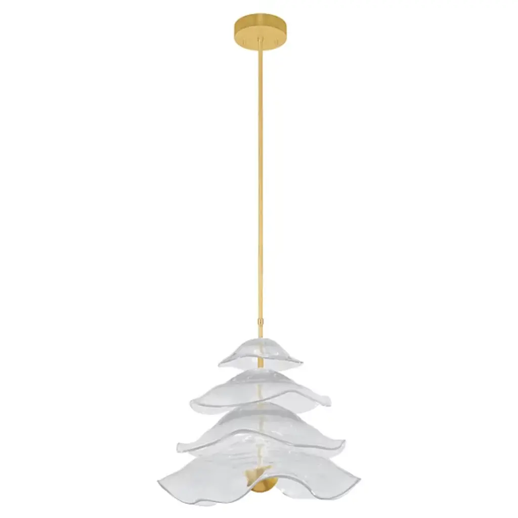 The Embark LED Pendant from Fine Art Handcrafted Lighting elevates any ceiling with its fluid composition. Designer Barclay Butera crafted this pendant using hand-blown glass pieces that capture the gentle movement of ocean waves. When lighted, the glass elements come alive with light that shifts across their surfaces, providing an illuminated celebration of light, texture, and the beauty of travel. The Miami-crafted glass demonstrates remarkable artisanship, managing to make solid materials appear in motion.