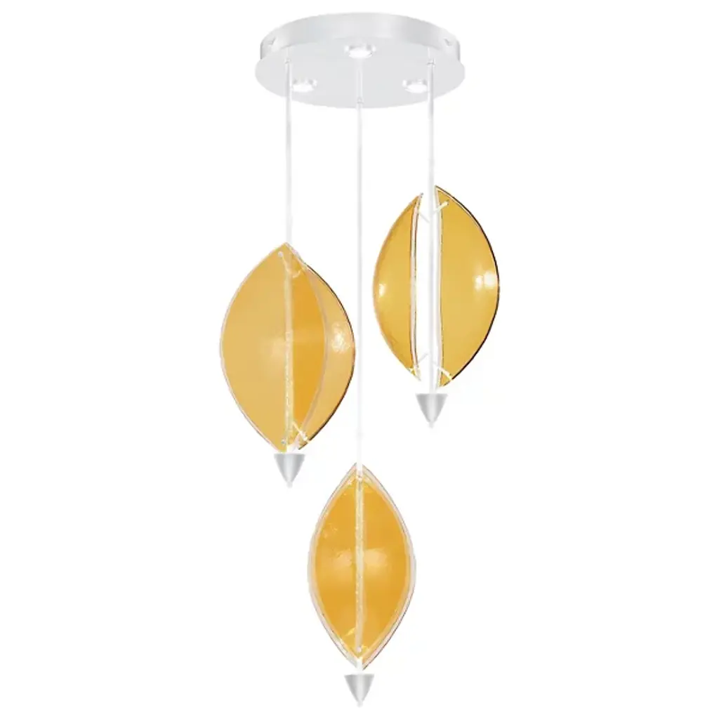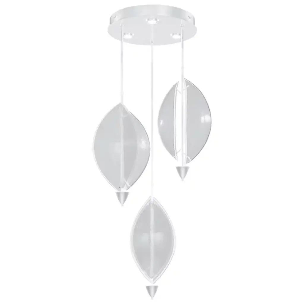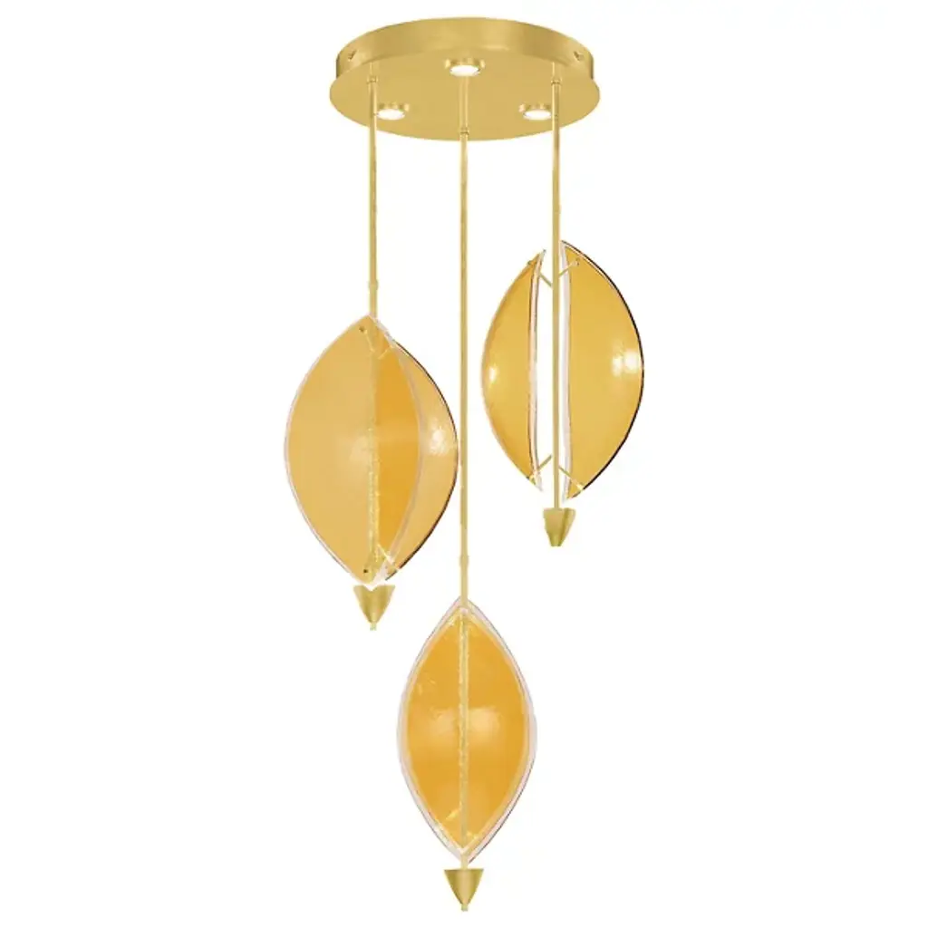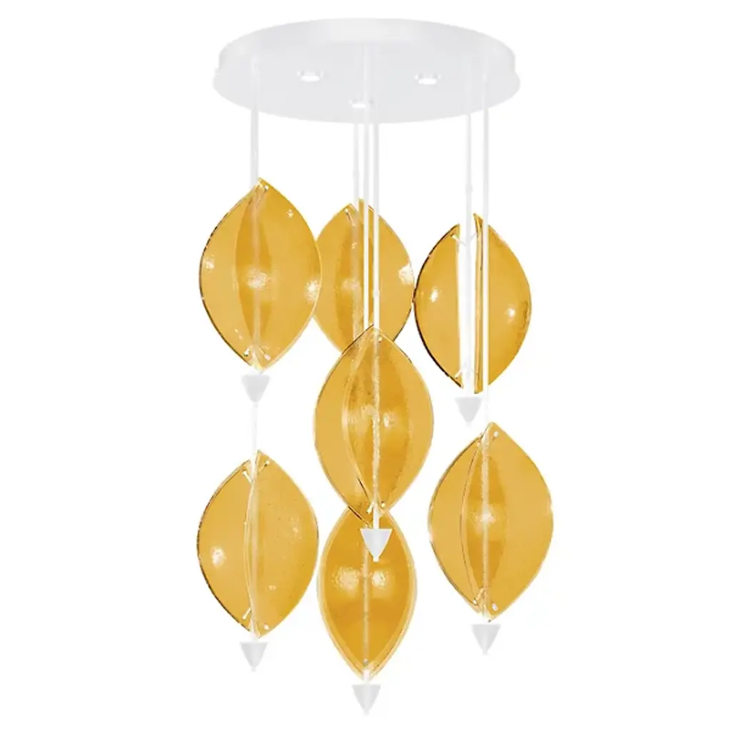 The Embark Multi-Light Pendant from Fine Art Handcrafted Lighting features multiple leaf-shaped glass pieces suspended at various heights. Each glass element hangs from thin wires connected to a round metal ceiling plate. Designed by Barclay Butera, the pendant’s hand-blown glass has a translucent quality that filters the LED light, creating a warm glow in the surrounding area. Small metal tips finish each glass piece, adding weight and stability to the design. This pendant fits naturally in coastal homes and dining areas where themed lighting enhances the overall design.