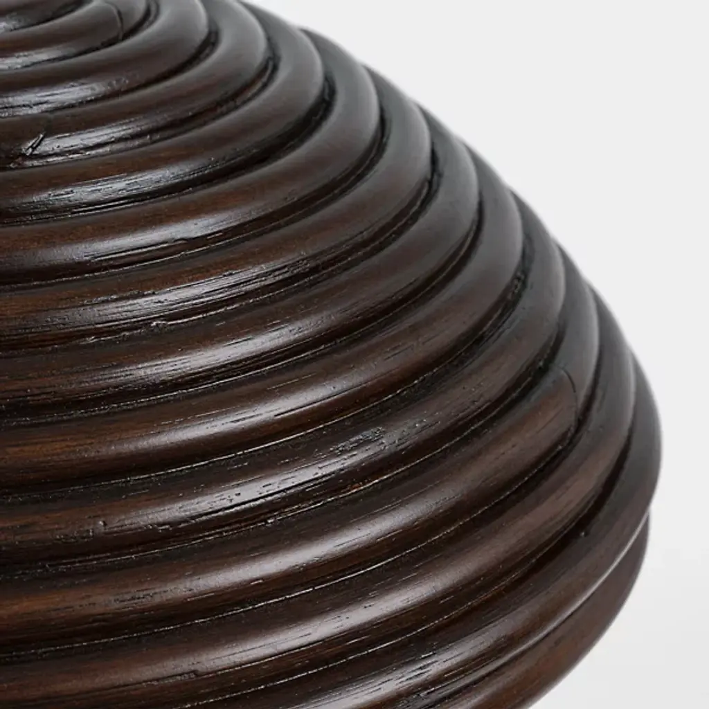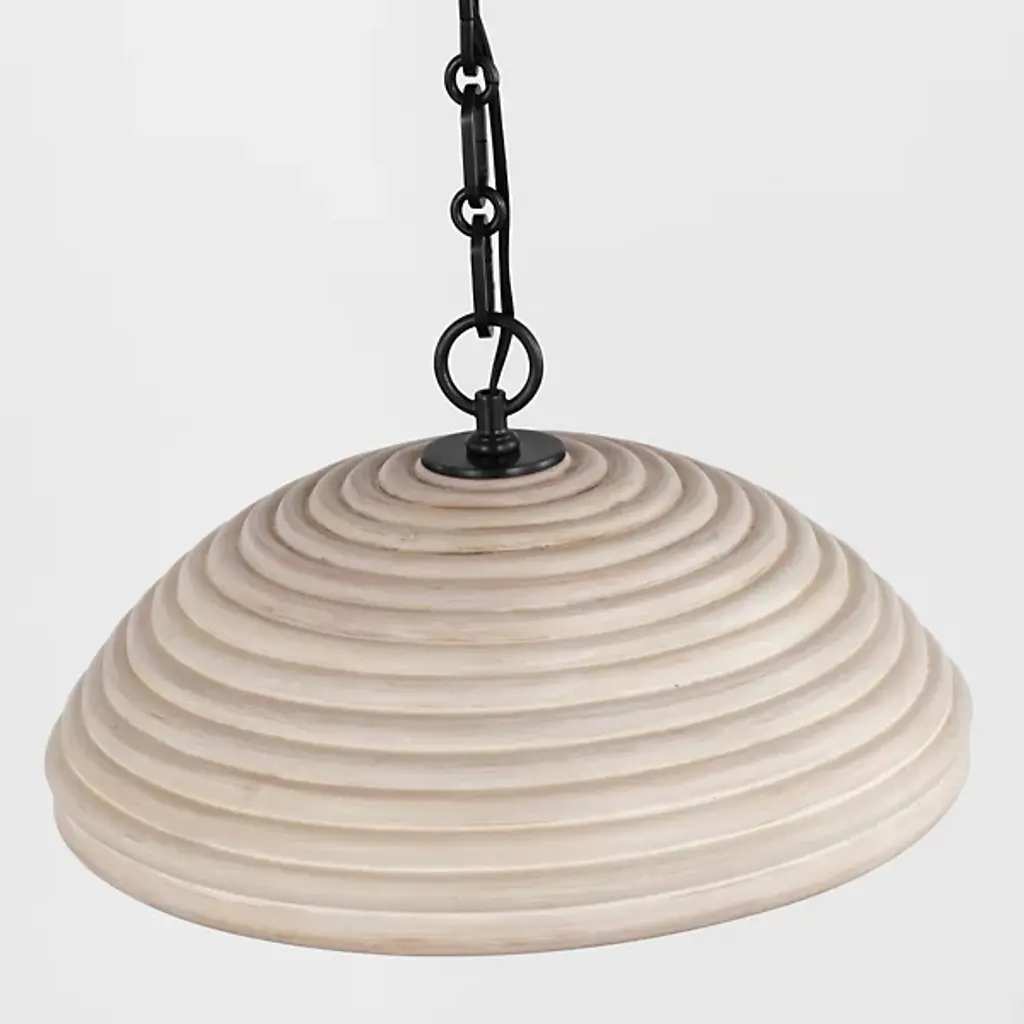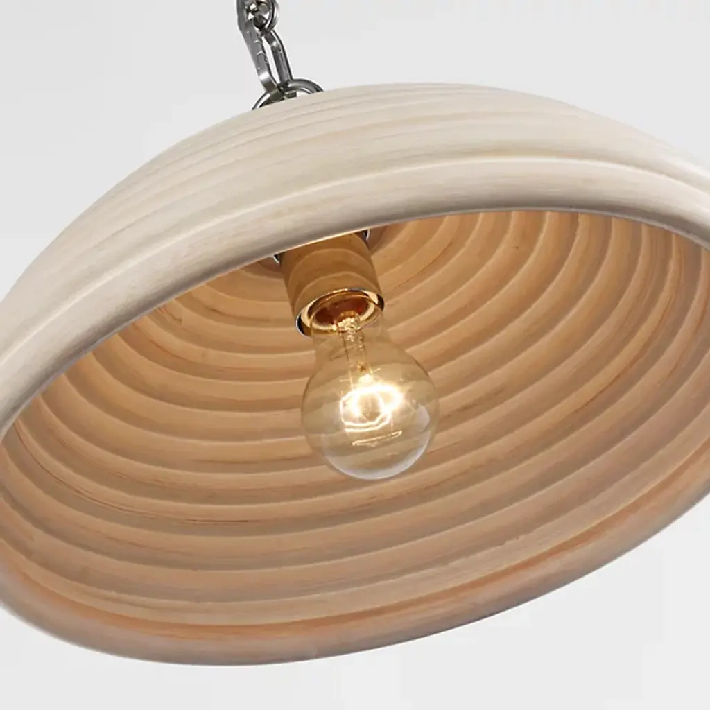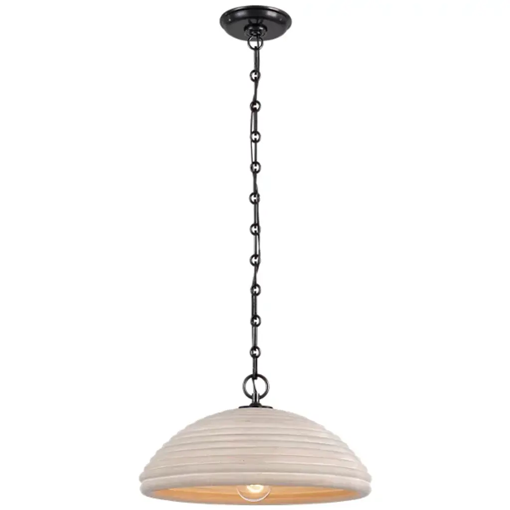 The Emerson Dome Pendant from Visual Comfort Signature takes a wider approach to rattan construction with its extended dome shape. Suzanne Kasler's design places emphasis on the horizontal banding technique, where parallel rattan strips work together to form a solid yet permeable shade. The pendant combines industrial elements through its chain mounting system with natural materials in the shade construction. Brass accents add definition to connection points, while the broader dome shape provides expanded light coverage.