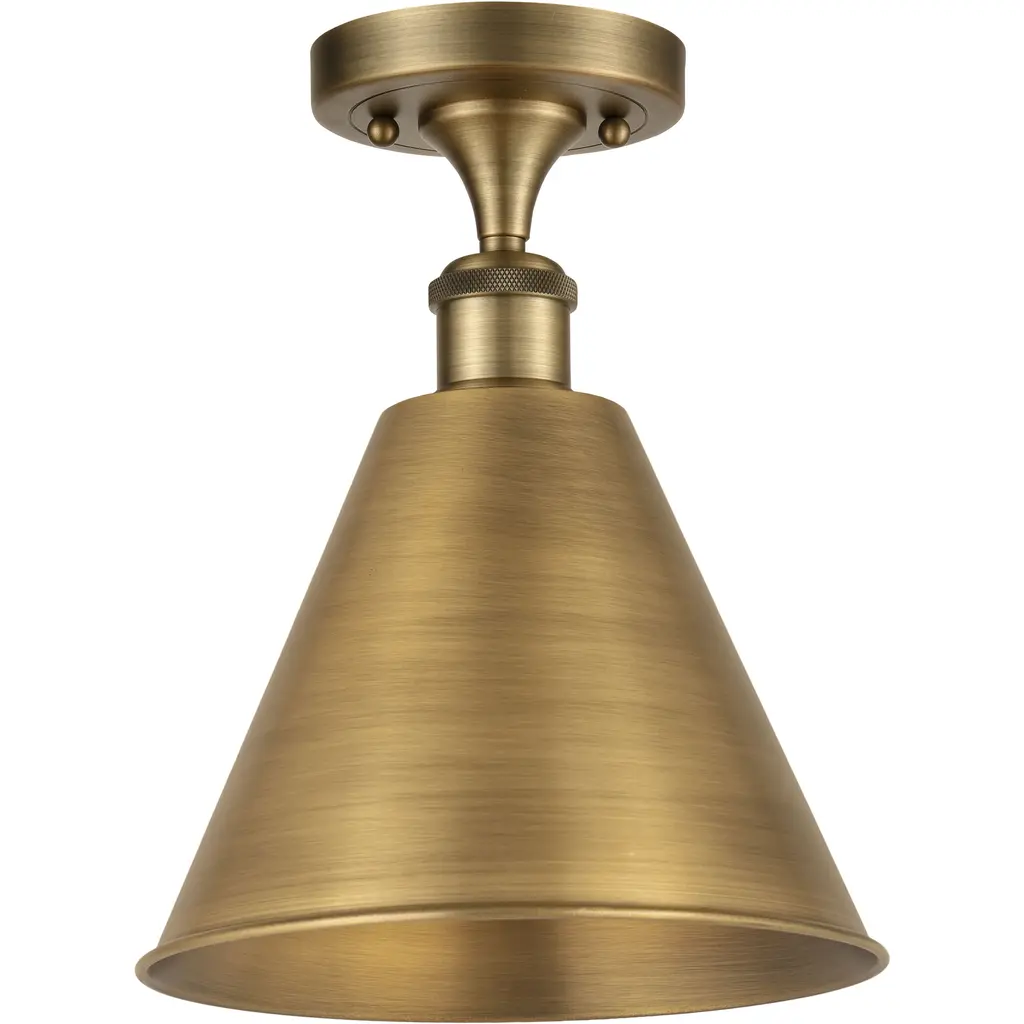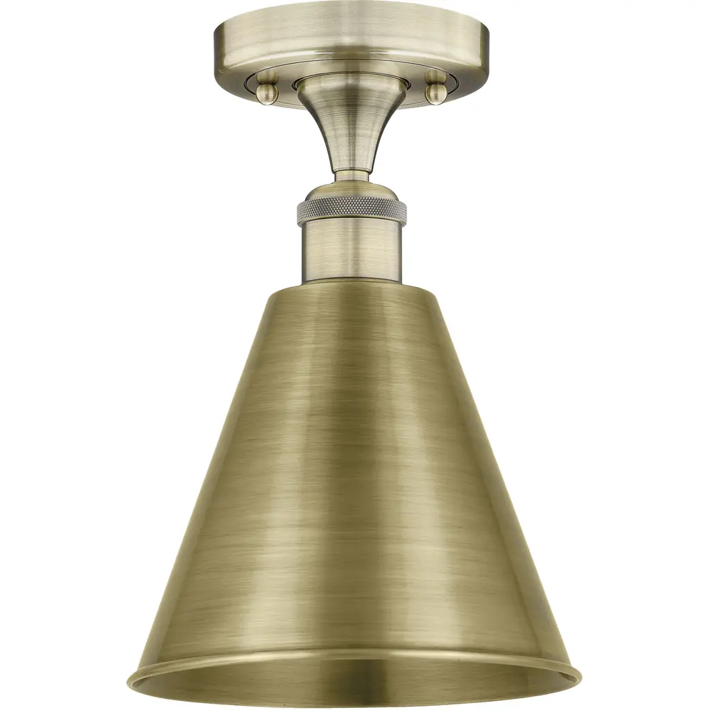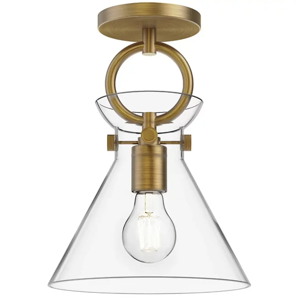 The Emerson Semi-Flushmount from Alora Mood complements ceilings short and tall with a handsome, efficient design. It’s a balanced visual, fitting for the cozy cottage or the eclectic space. The luminaire’s metal structure features a ring accent and protruding elements that give off a high-style, industrial look. A shade tapers on both ends like a beautiful decanter. This shade fans the bulb’s light for a great atmosphere.