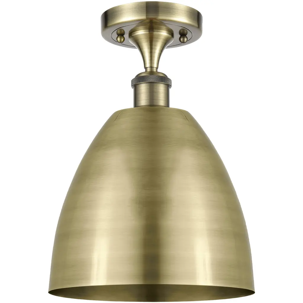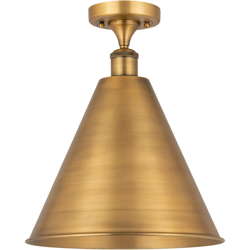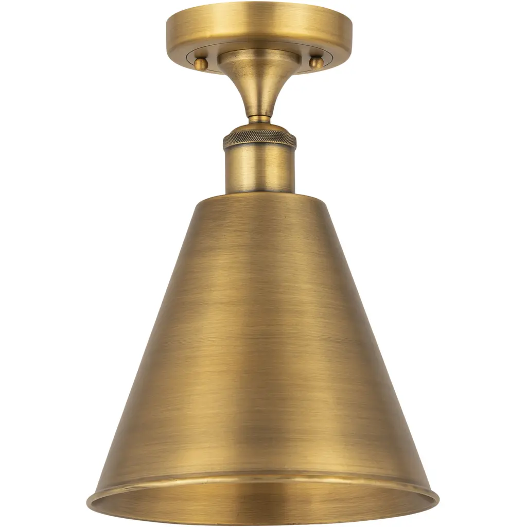 The Emerson Semi-Flushmount from Alora Mood complements ceilings short and tall with a handsome, efficient design. It’s a balanced visual, fitting for the cozy cottage or the eclectic space. The luminaire’s metal structure features a ring accent and protruding elements that give off a high-style, industrial look. A shade tapers on both ends like a beautiful decanter. This shade fans the bulb’s light for a great atmosphere.