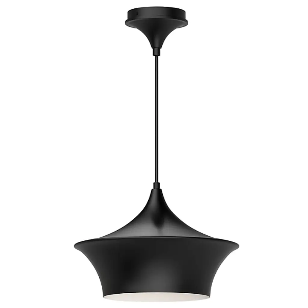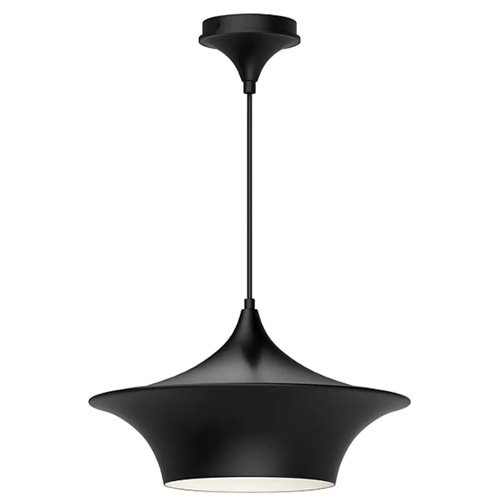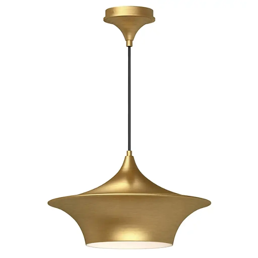 The Emiko Pendant from Alora Mood enlivens ceilings with an inspired, sculptural simplicity. A conical canopy retains the fixture, transmitting a single cable to a strong lamping set inside a larger conical housing of smooth metal that follows the lead of the canopy and contracts to reveal a small, circular opening below. The smooth structure lets it blend in well with modern or transitional surroundings, dispensing a focused pool of downlight below the fixture.