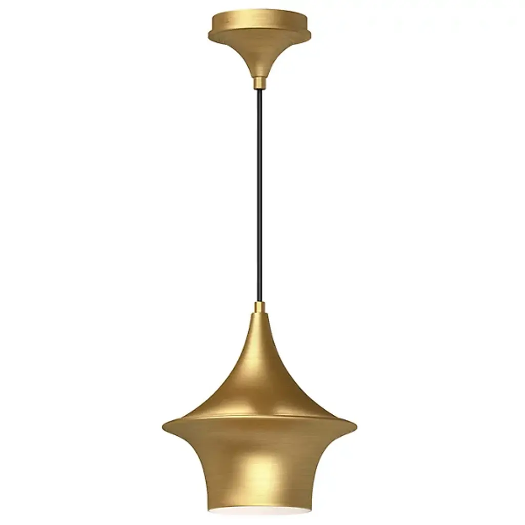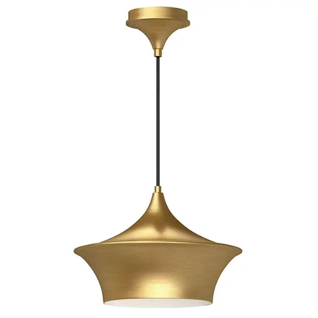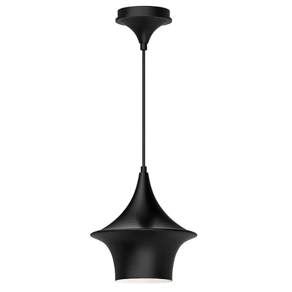 The Emiko Pendant from Alora Mood enlivens ceilings with an inspired, sculptural simplicity. A conical canopy retains the fixture, transmitting a single cable to a strong lamping set inside a larger conical housing of smooth metal that follows the lead of the canopy and contracts to reveal a small, circular opening below. The smooth structure lets it blend in well with modern or transitional surroundings, dispensing a focused pool of downlight below the fixture.