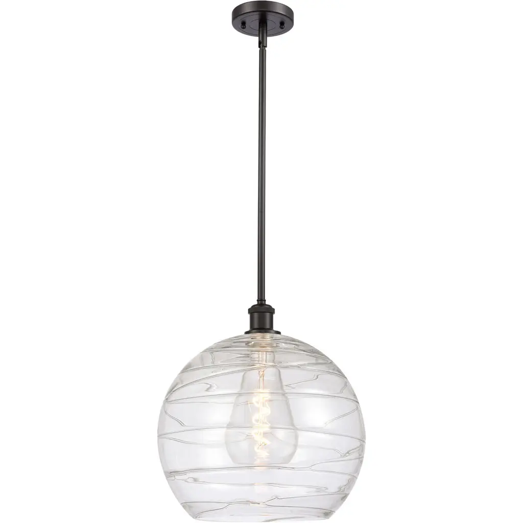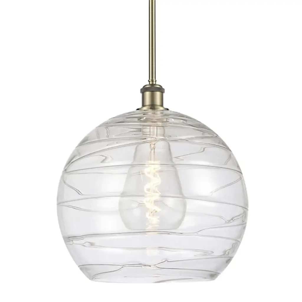 Make your inside spaces the last word in elegance with the sleek and intriguing lines of the Emilia 1 Light Pendant from Alder & Ore. A smooth disc canopy secures the fixture from above, dispatching a slender stem down to a single damp-rated socket threaded through a stylish shade of clear, swirled glass. The shade’s open base still allows for direct downlight ideal for daily tasks, while the translucent shade surface negates bright glare from the sides, sending out a warm glow that casts the knurled band above the shade into sharp relief.