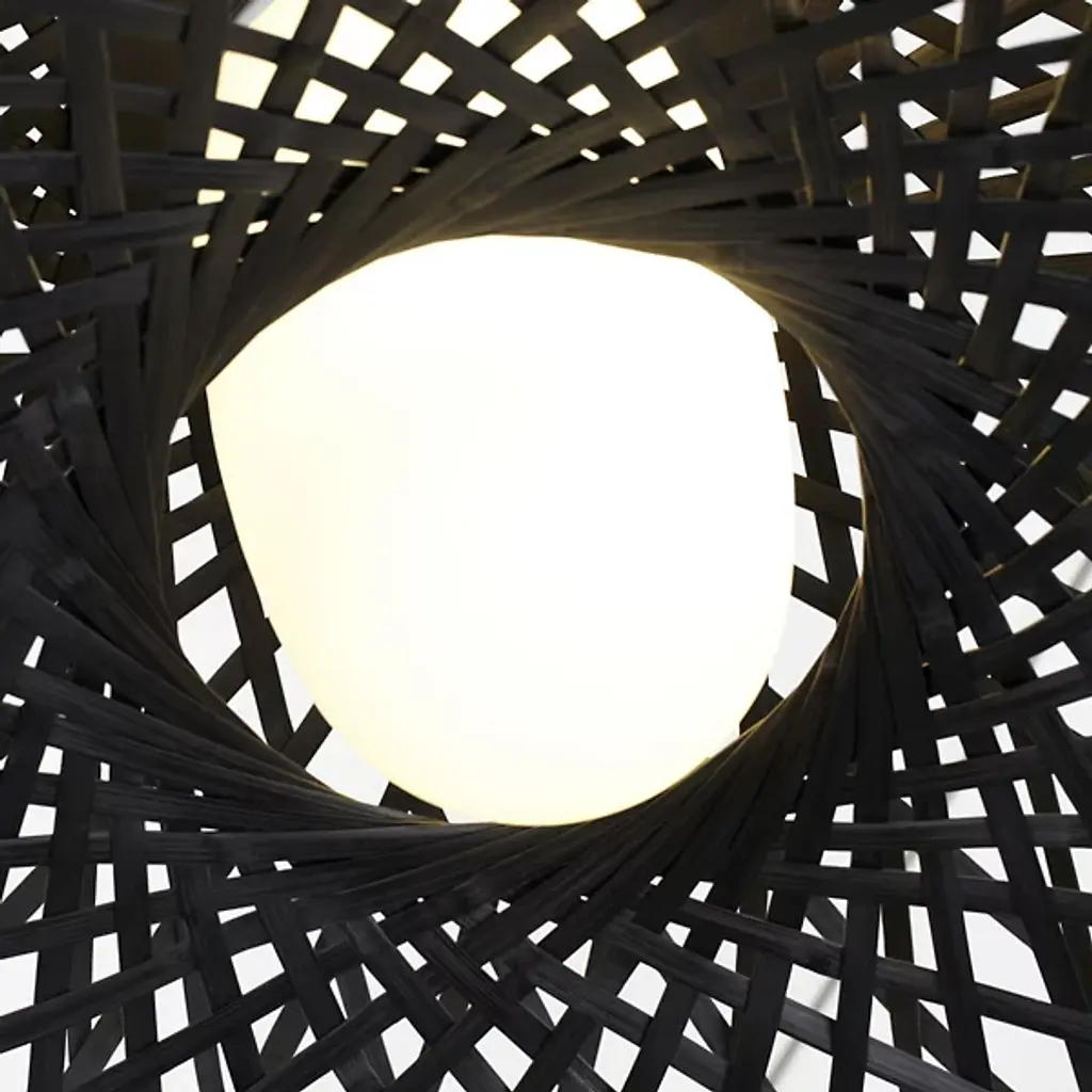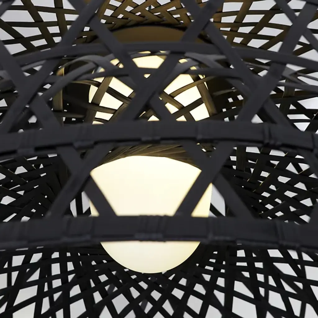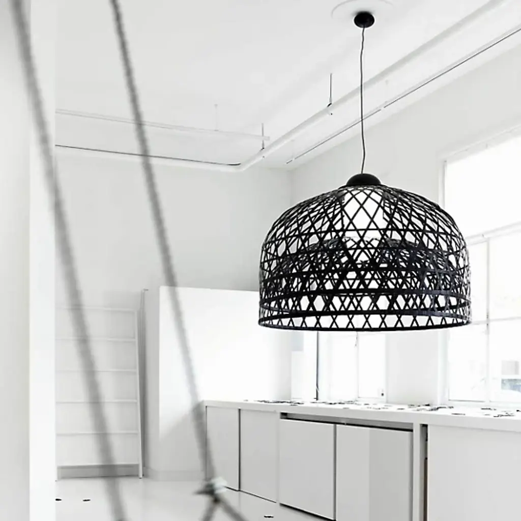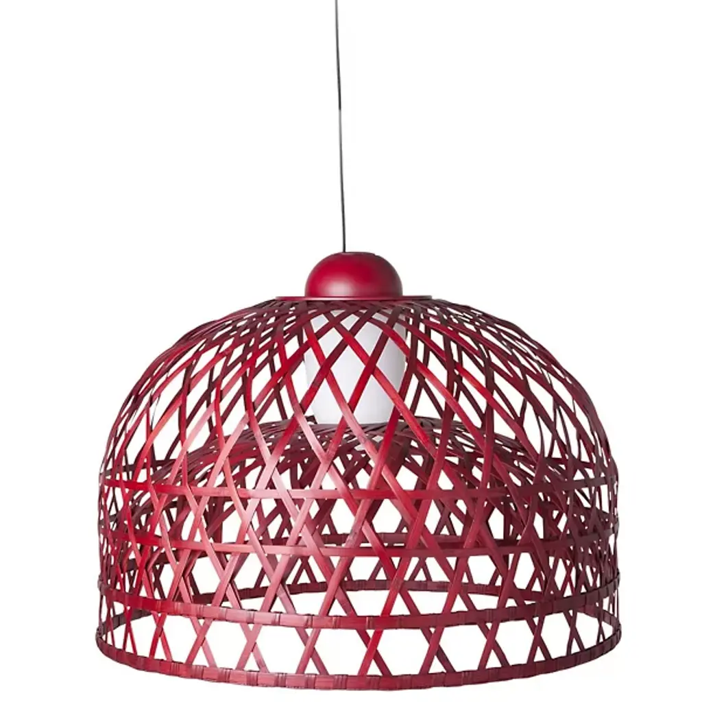 Inspired by the form of a birdcage, the Moooi Emperor Pendant yet allows the light it contains to continually escape. The intricately hand-woven bamboo rattan shade surrounds an internal glass diffuser, creating a distinctive pattern of light and shadow.
