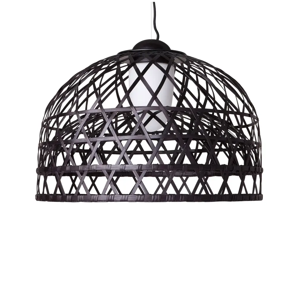Elevate your space with the intricate beauty of the Emperor Suspended Lamp from Moooi. Inspired by a birdcage, its hand-woven bamboo rattan shade allows light to escape, creating a unique play of light and shadow. Dripping in playful sophistication, this pendant is perfect for adding a pop of texture to any room. Highlights