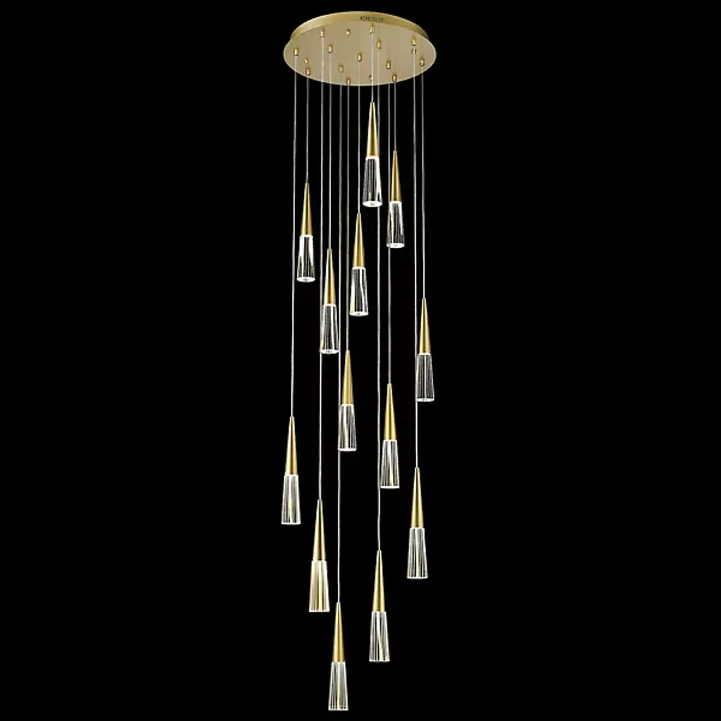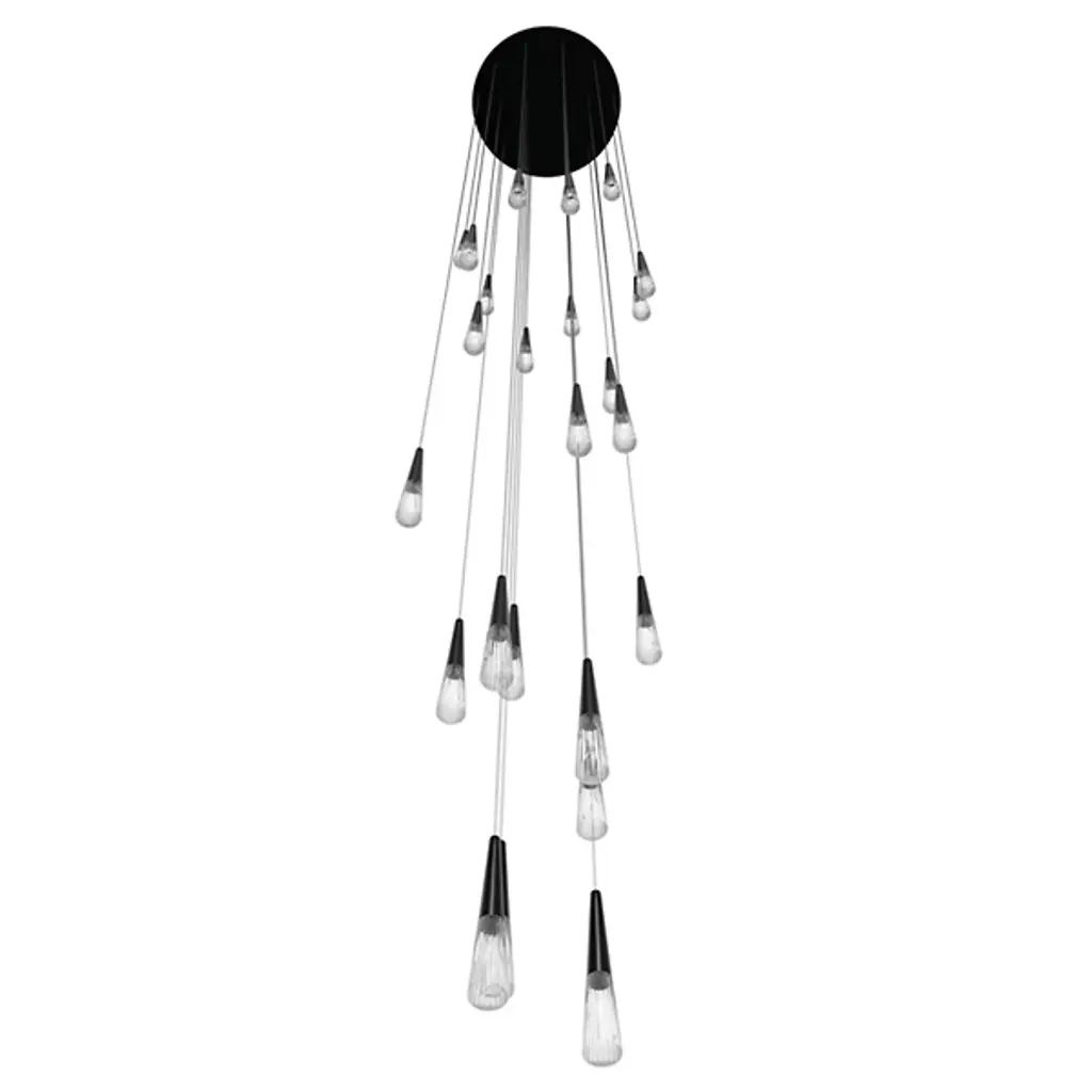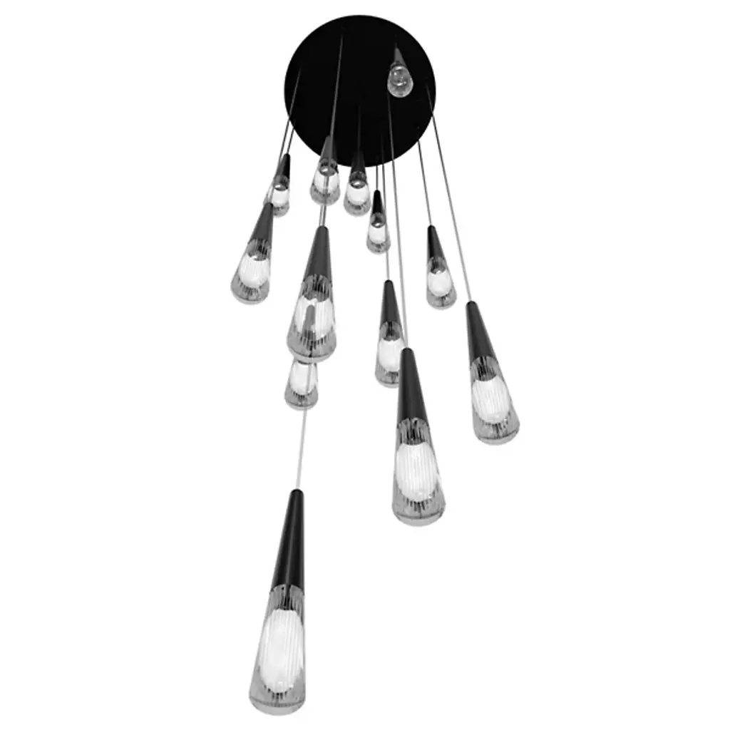Bring an elegant addition to your indoor spaces with the Encino Multi-Light Pendant from Avenue Lighting. A stylish contemporary fixture that starts with a smooth disc ceiling mount, it sends down a series of slender cables to suspend conical metal housings at different heights. Each housing holds a power-efficient LED lamp capped by a shade that flares out just a bit further, focusing the lamping directly below through an open base while dispensing an ambient glow through the clear sides of the shades.