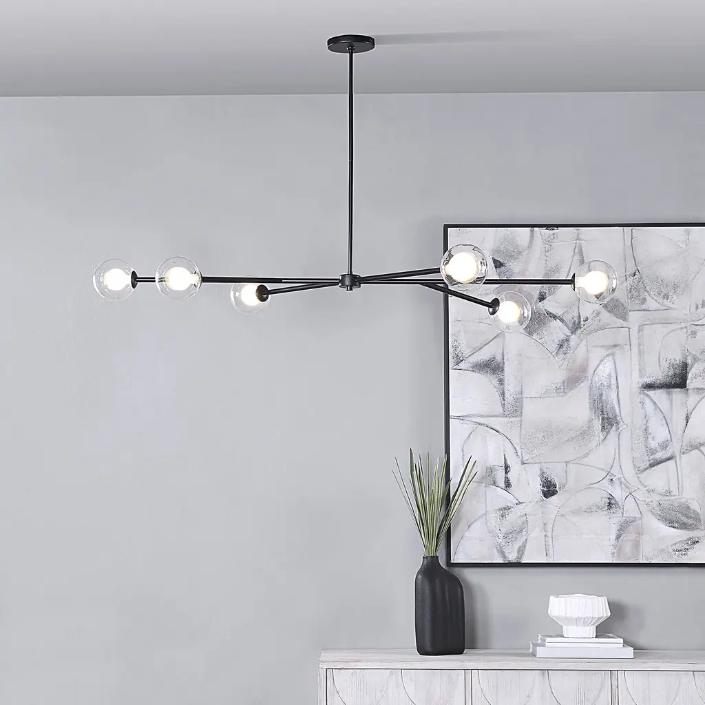 A perfect blend of creative design and sleek simplicity, this ceiling light fixture elevates the interior it's set within without overpowering it. Featuring a matte black iron structure and uniquely shaped bulbs, the unique structure of this ceiling light fixrture allows a glow to reach every corner of a room. When set in a kitchen space, everyday routines and special gatherings are equally enhanced.