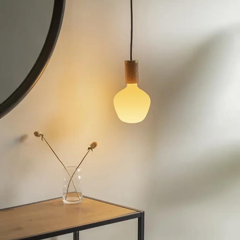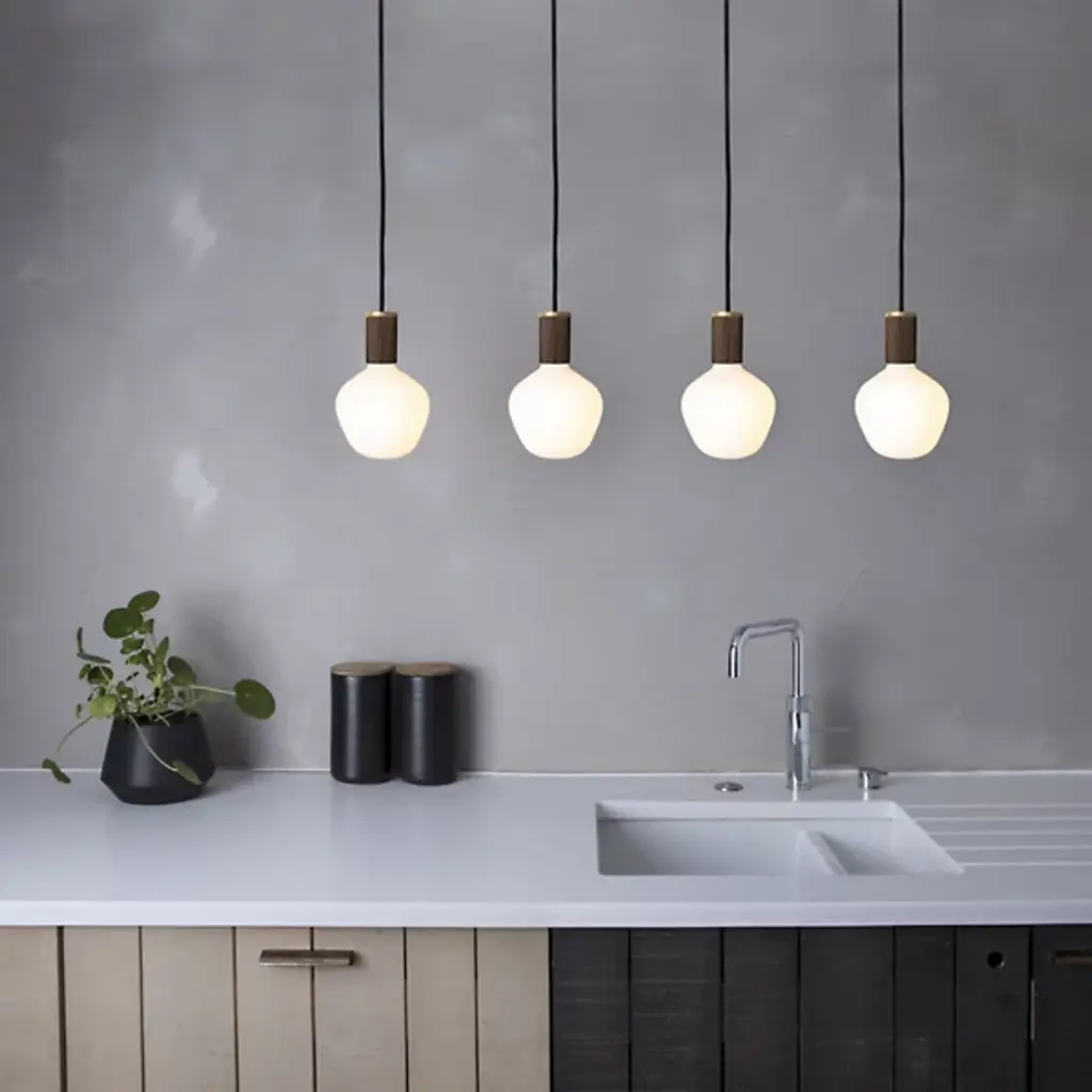 The Enno Single Pendant by Tala is an elegant alternative to the industrial-style exposed filament lamp. A smooth LED filament is contained in a mouth-blown, matte glass bulb. Its defined, trapezoid form embraces the primary geometrics it is based on and is paired perfectly with a minimally styled socket for a simple yet stunning display of light. Elevating the humble light bulb, Tala aims to create pieces that pair beautiful design with efficient technology.