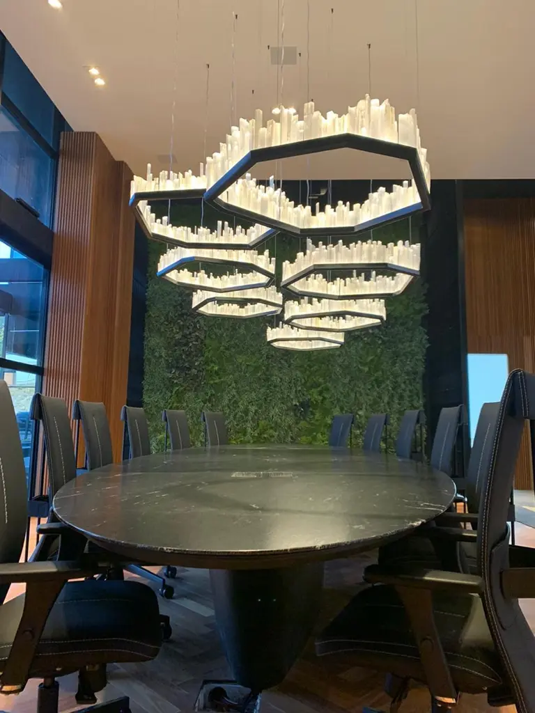 Ensemble Of 7 White Quartz Pendant Lamp By Aver