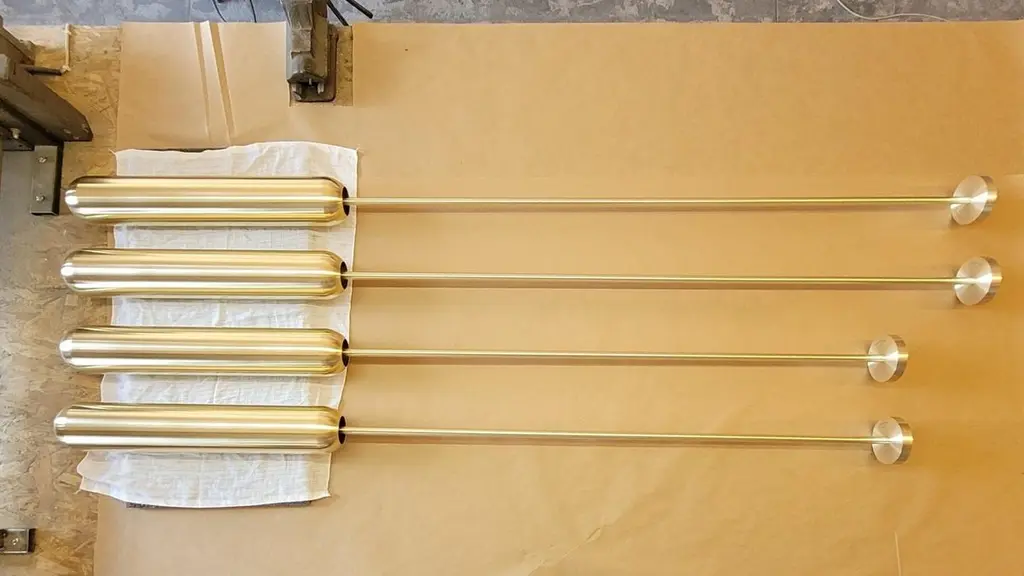 Ensemble of Three U2 Sculptural Brass Suspension Pendant Lights by Jan Garncarek Dimensions: 56 x 10 x 10 cmMaterial: BrassHandcrafted by Jan Garncarek.SignedAlso available in different finishes: - brass (waxed)- nickel coating- copper coating- age brass- black painted- white paintedInformation: weight:6 kg / 13 lbvoltage: 120V, 240Vlamping: 1 x Gu 10, max 60W, 50-60 Hztightness class: IP 21certificates: CE approved, RoHSHeavy vertical form. The lamp is the result of the designer's battlefield fascination from his childhood. The designer came from a family with a military tradition. Bullet shells were the first material Jan Garncarek processed while learning the basics of metallurgy. The designer refers tothe shape of the shell. However, he does not identify it with the cruelty of war. The object captures the fascination of the shape and material, completely out of context of war. Just as only an unaware child is able to perceive reality and its beauty without prejudice.Jan Garncarek is an important contemporary designer, graduated from the Academy of Fine Arts in Warsaw. He gained extra qualifications at Politecnico di Milano. He has acquired professional experience in the design society. He took part in projects such as: design of visual information for the Museum of the history of Polish Jews, interior design project of the Polish cultural Institute in Tel Aviv, space arrangement of the Presidential Palace of Poland, interior design project of the Polish Embassy in Berlin and Skopje, Modernization of the Malachowski's Square in Warsaw. His process of designing is the state of researching, discovering and being curious of the world, making insightful observations and drawing sensible conclusions.All our lamps can be wired according to each country. If sold to the USA it will be wired for the USA for instance.
