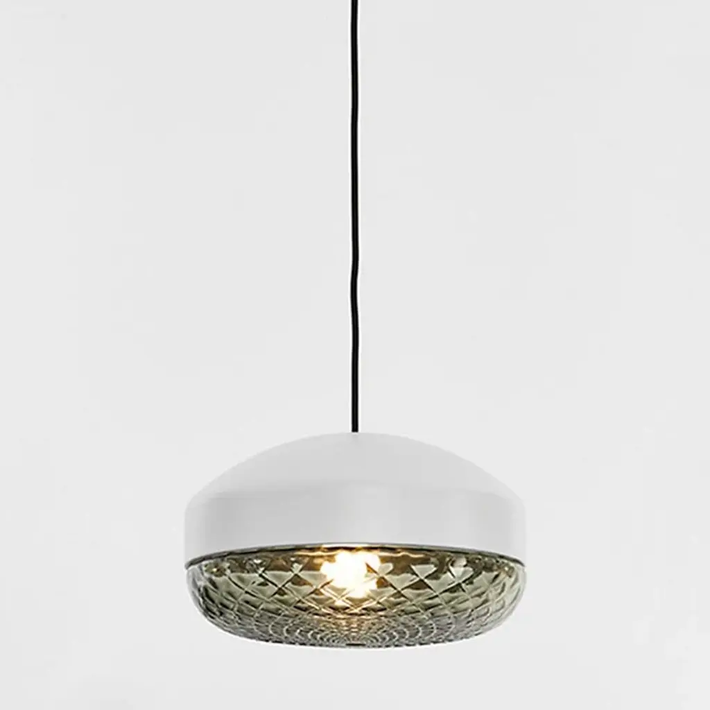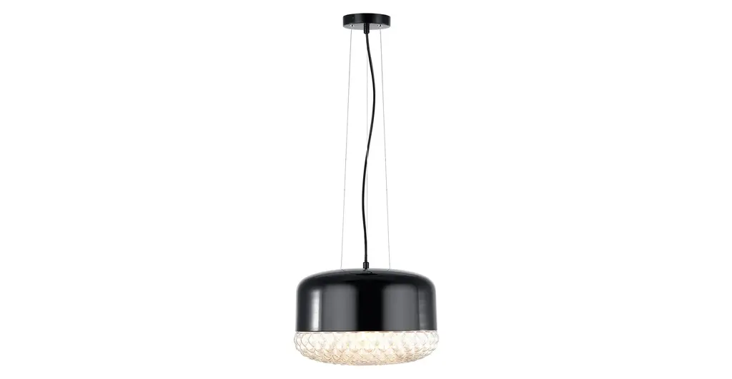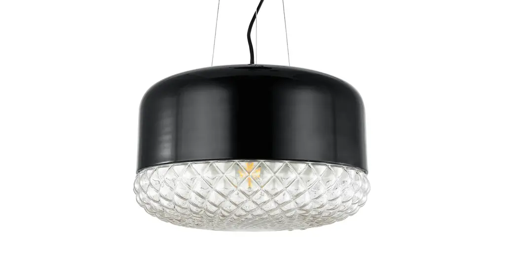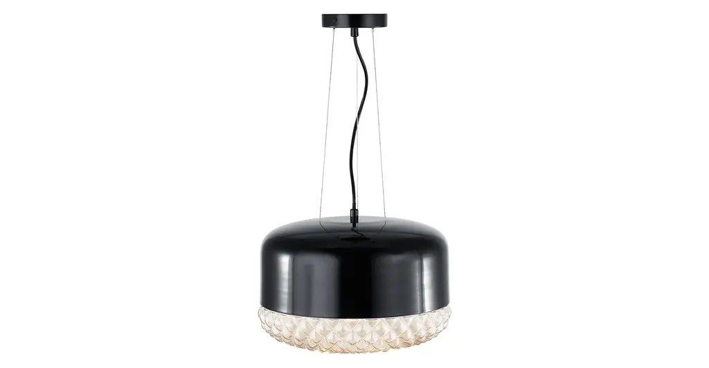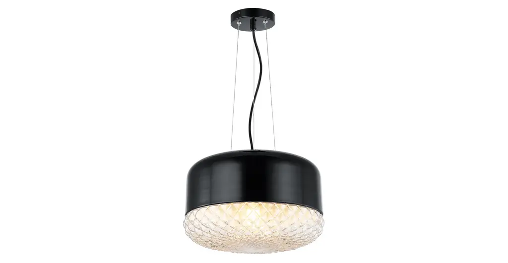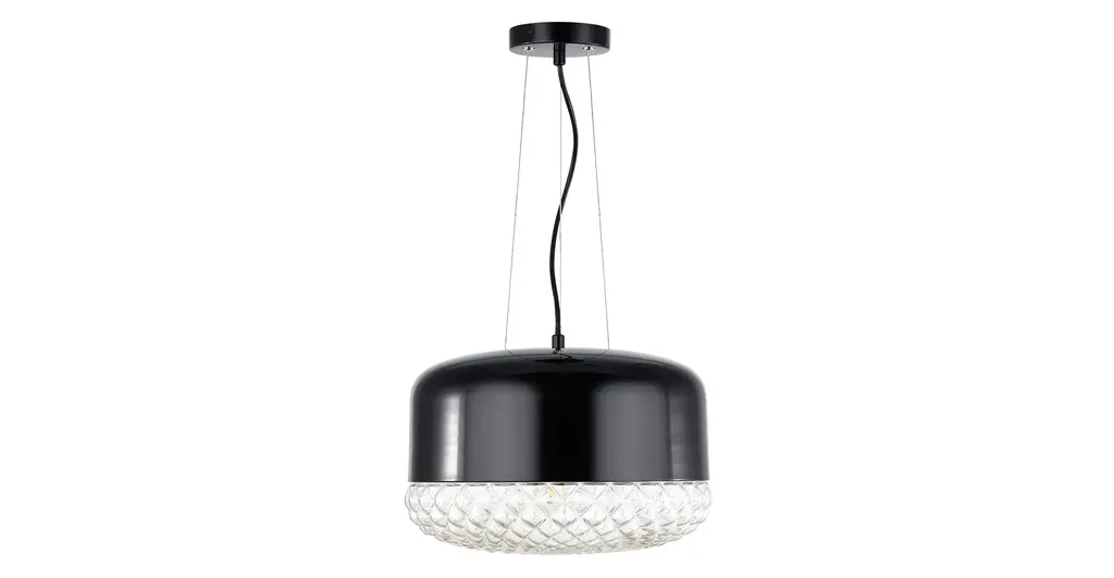 Acorn-etched glass takes this modern light fixture from standard to spectacular. Featuring a black-painted iron shade, the distinctive glass of the Enzo Pendant Light diffuses light in the softest, most flattering way. Hang it over the dining table or in the living room; not only will it look amazing, it will make everyone in the room look amazing, too.