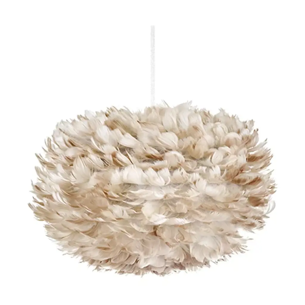 Thousands of goose feathers surround the bright core of the UMAGE Eos Brown Pendant, a design that is a statement of humane practices and sustainable production. The feathers are procured responsibly, sanitized and repurposed for the fixture, then attached to the paper structure on the inside. The Eos is fire-resistant and easily maintained; you can clean and revitalize the feathers with a hair dryer.