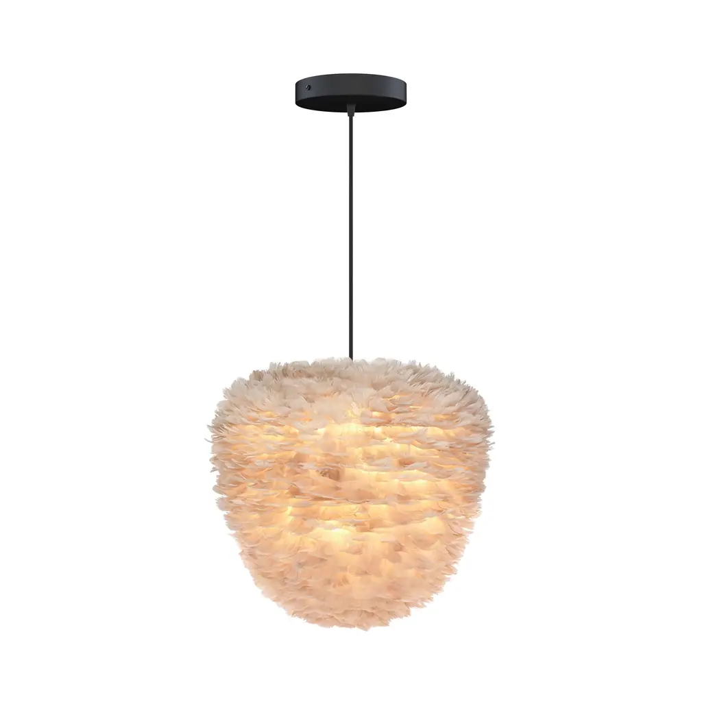 Resembling the shape of nature's beehive, Evia's feathery shade has a cloud-like presence, characteristic of Umages fluffy Eos series suggested by Greek mythology and named for the goddess of the dawn. Designer Soren Ravn Christensen's pendant emits warm diffused illumination and is available in 2 sizes to be situated alone or mixed and matched in clusters with the other varied shapes for a mesmerizing effect. The Copenhagen brand takes pride in its eco-conscious flat-pack shipping and Evia is easily assembled and efficiently cleaned with a hairdryer.