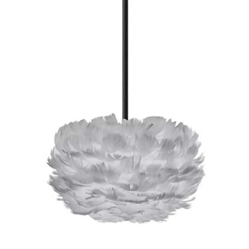 Wondrous and graceful, the Eos Pendant by UMAGE is an amiable fixture that will bring warmth and comfort to any modern setting. Appearing to float effortlessly on air, Eos is composed of goose feathers and paper, and is perfect for installing in a series or cluster. Provides gentle, diffused illumination suitable for modern bedrooms, living rooms and hospitality spaces. Offered with a choice of textured white or black cords and hardware. Select from a hardwired steel canopy or plug-in swag set. Shown with white feathers and white cord.