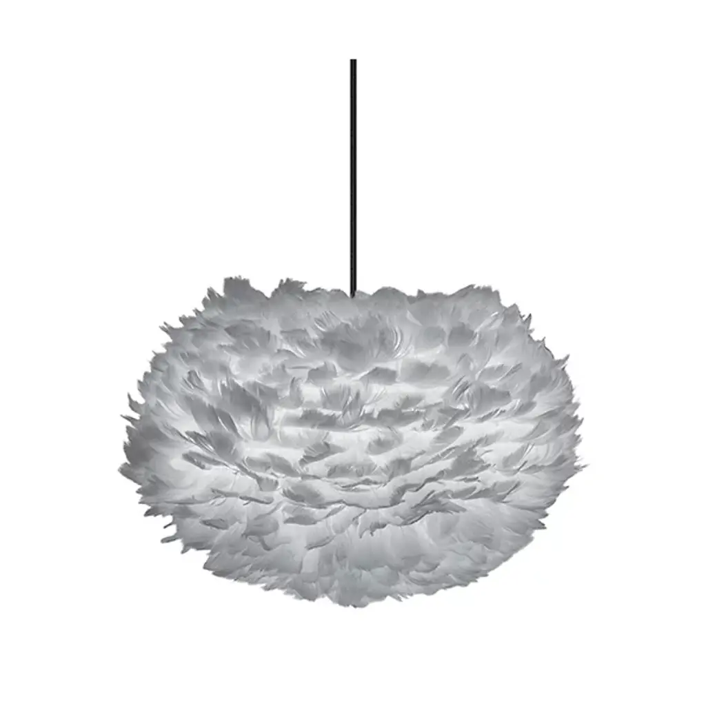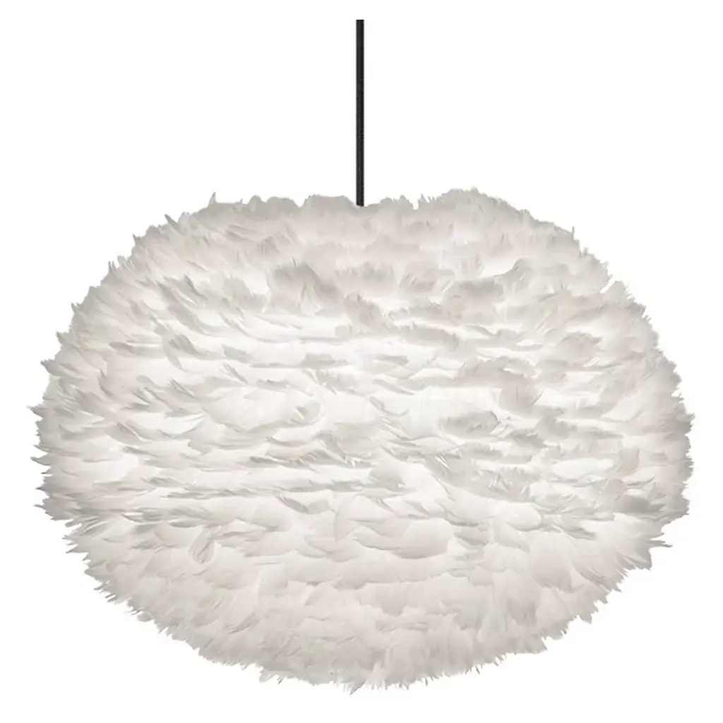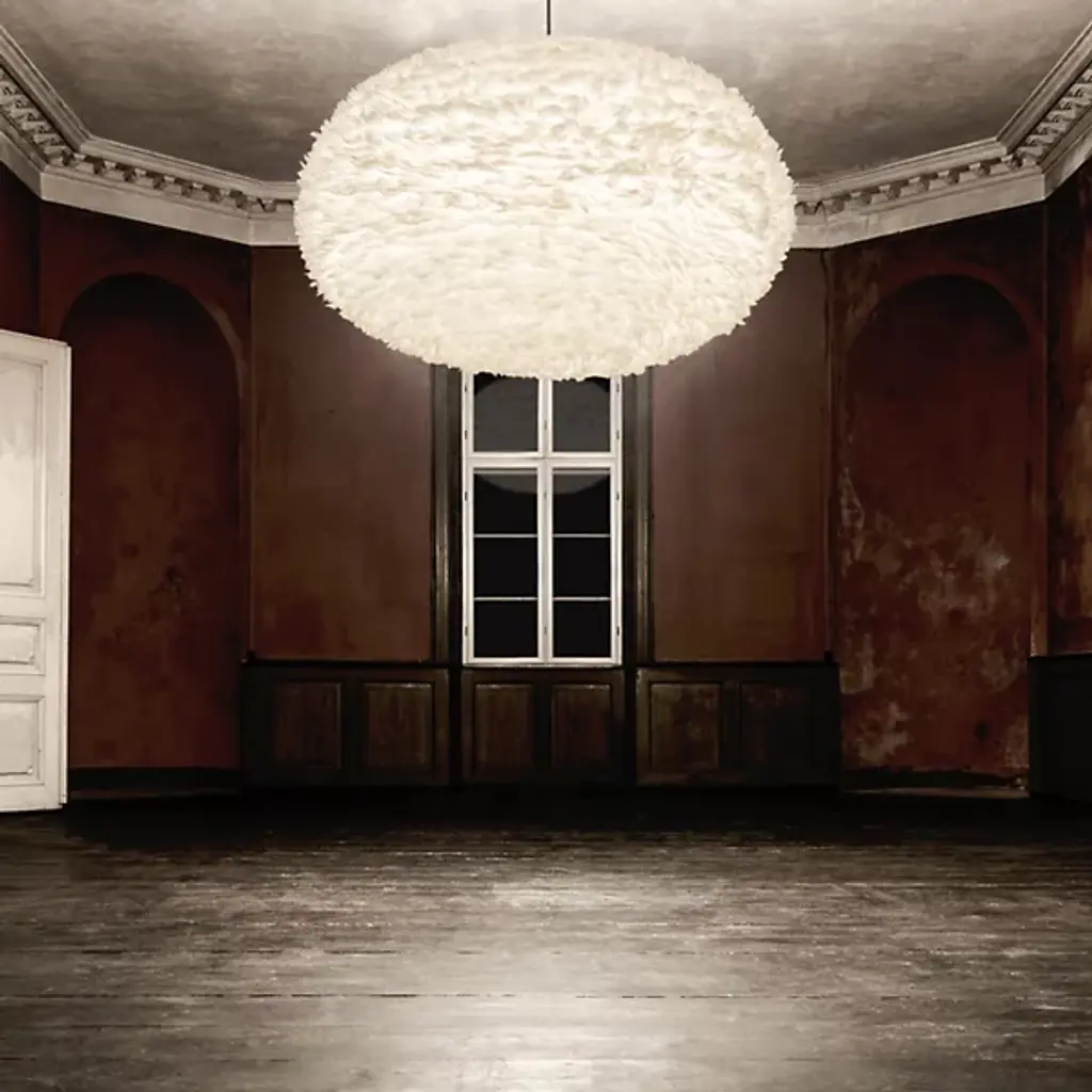 Thousands of goose feathers surround the bright core of the UMAGE Eos Pendant, a design that is a statement of humane practices and sustainable production. The feathers are procured responsibly, sanitized and repurposed for the fixture, then attached to the paper structure on the inside. The Eos is fire-resistant and easily maintained; you can clean and revitalize the feathers with a hair dryer.