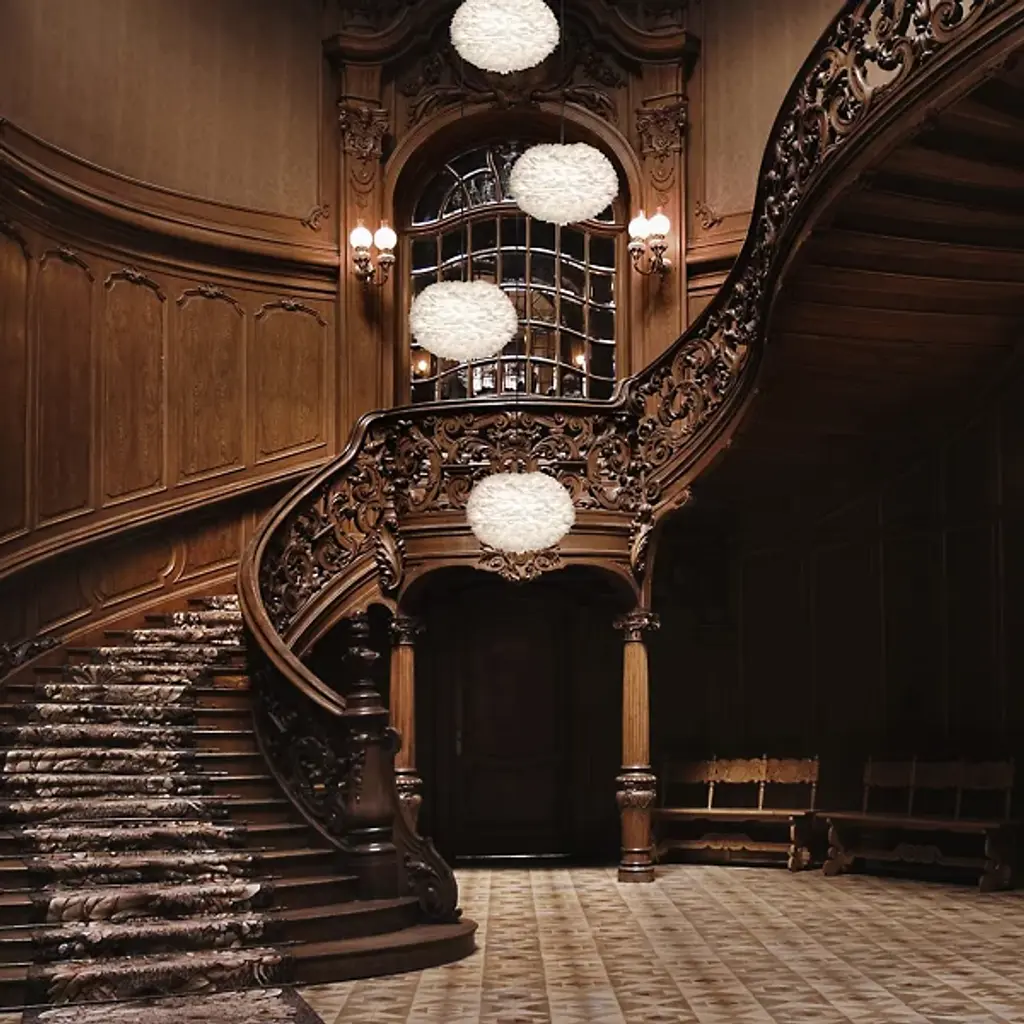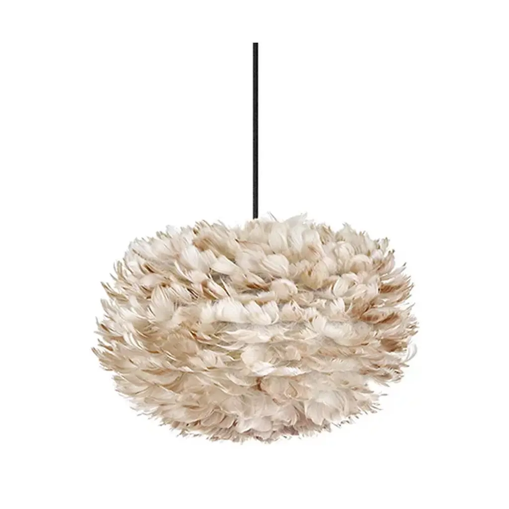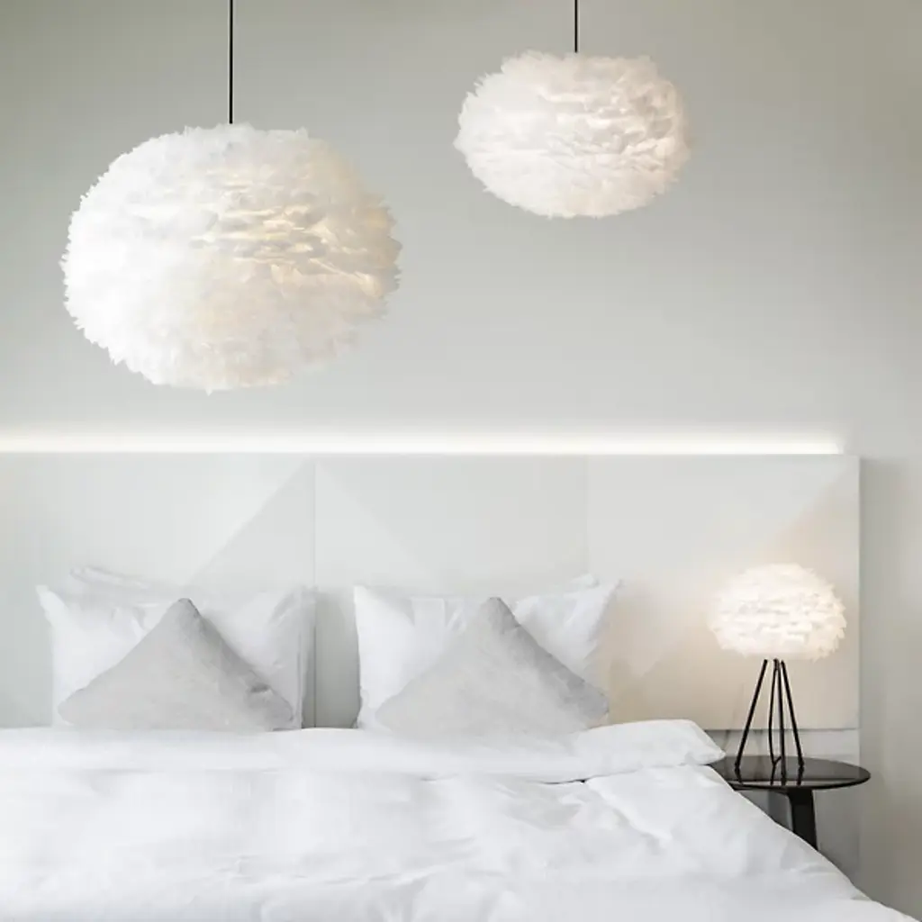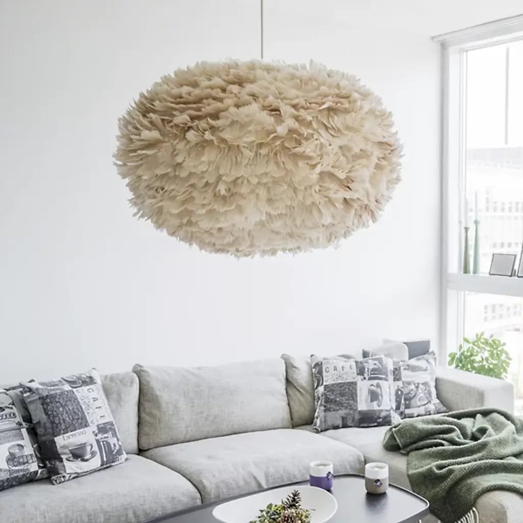 Thousands of goose feathers surround the bright core of the UMAGE Eos Pendant, a design that is a statement of humane practices and sustainable production. The feathers are procured responsibly, sanitized and repurposed for the fixture, then attached to the paper structure on the inside. The Eos is fire-resistant and easily maintained; you can clean and revitalize the feathers with a hair dryer.