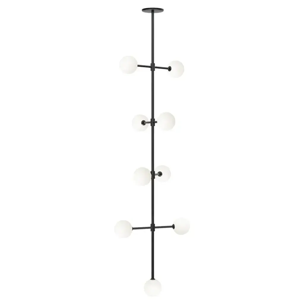 Epic two pendant light by atelier areti dimensions: d 50 x w 50 x h 191 cm. Materials: powder-coated metal, white glass. up to 250v (europe/uk standard).