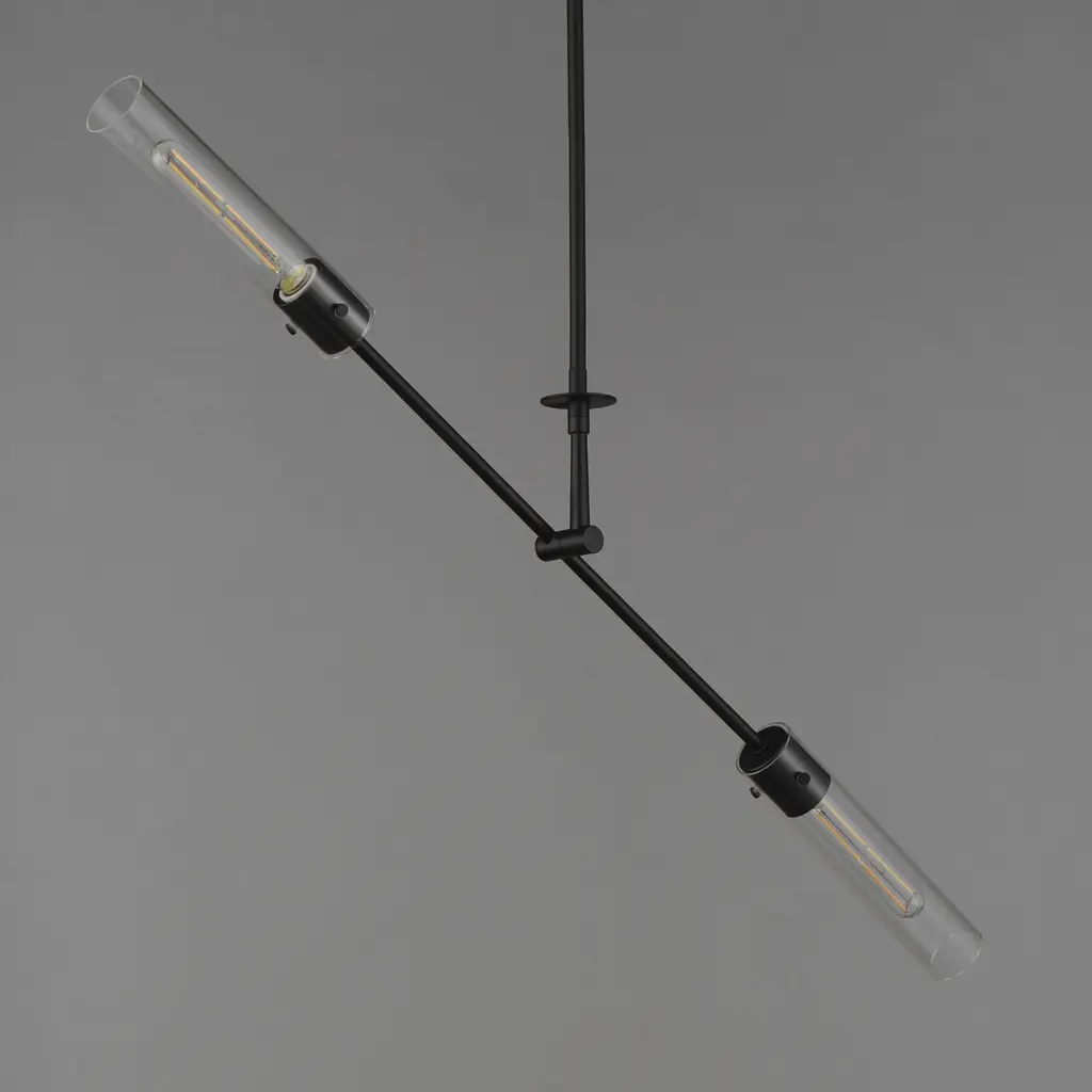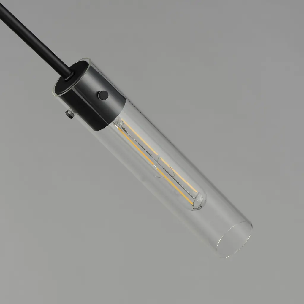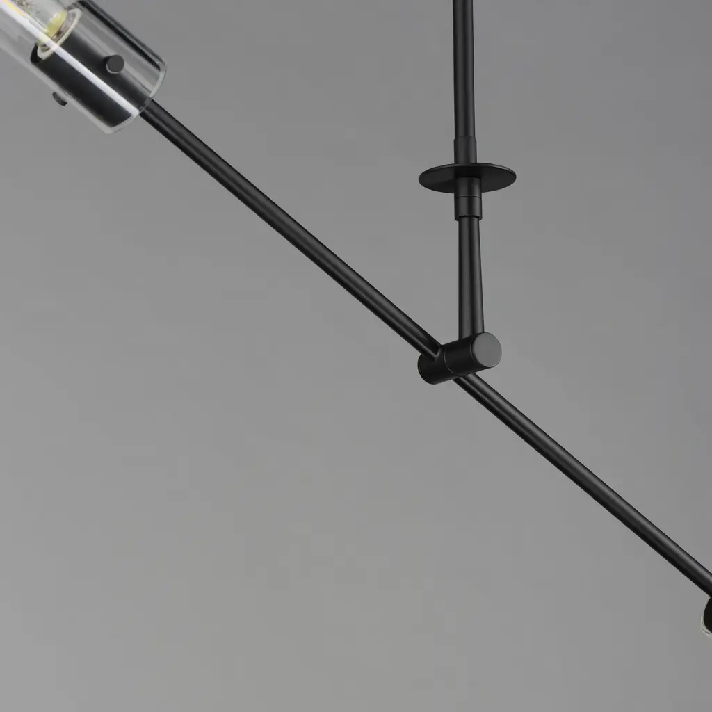 Dramatically modern, individually supported rods run through a series of flat circular disks adding interest to the elongated adjustable arms that can be configured according to how you choose to position them. Finished in Naturally Aged Brass and Matte Black finishes, the frames terminate at their ends with LED tubular lamps supplied and shrouded in long cylindrical glass shades secured with pins at the fixture's sockets. The characteristic details and warm filament light source add industrial flair making the collection's modern configuration suitable to a wider array of transitional styling.