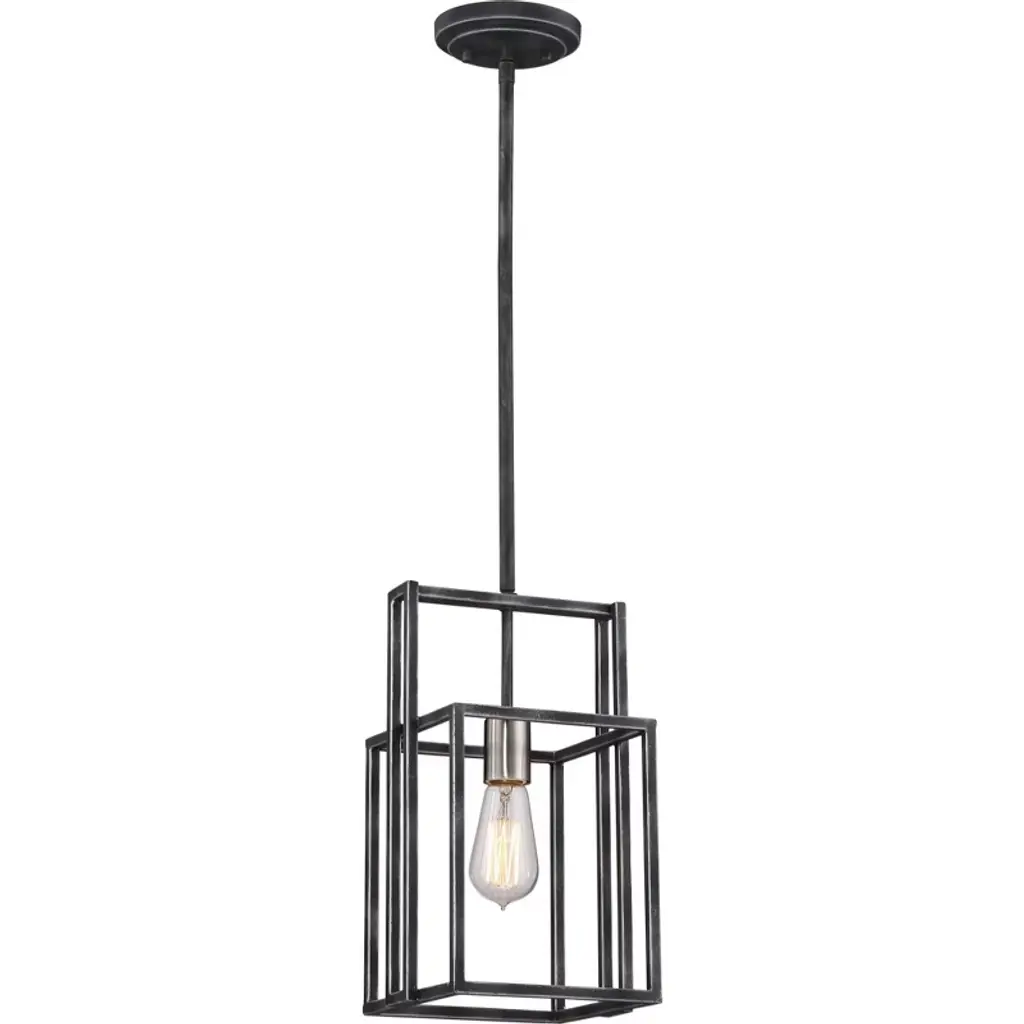 Geometric metal frames finished in Black support panes of clear Seedy glass, provides for a refined restoration look. Add vintage bulbs (not included) to complete the authentic feel of this design.