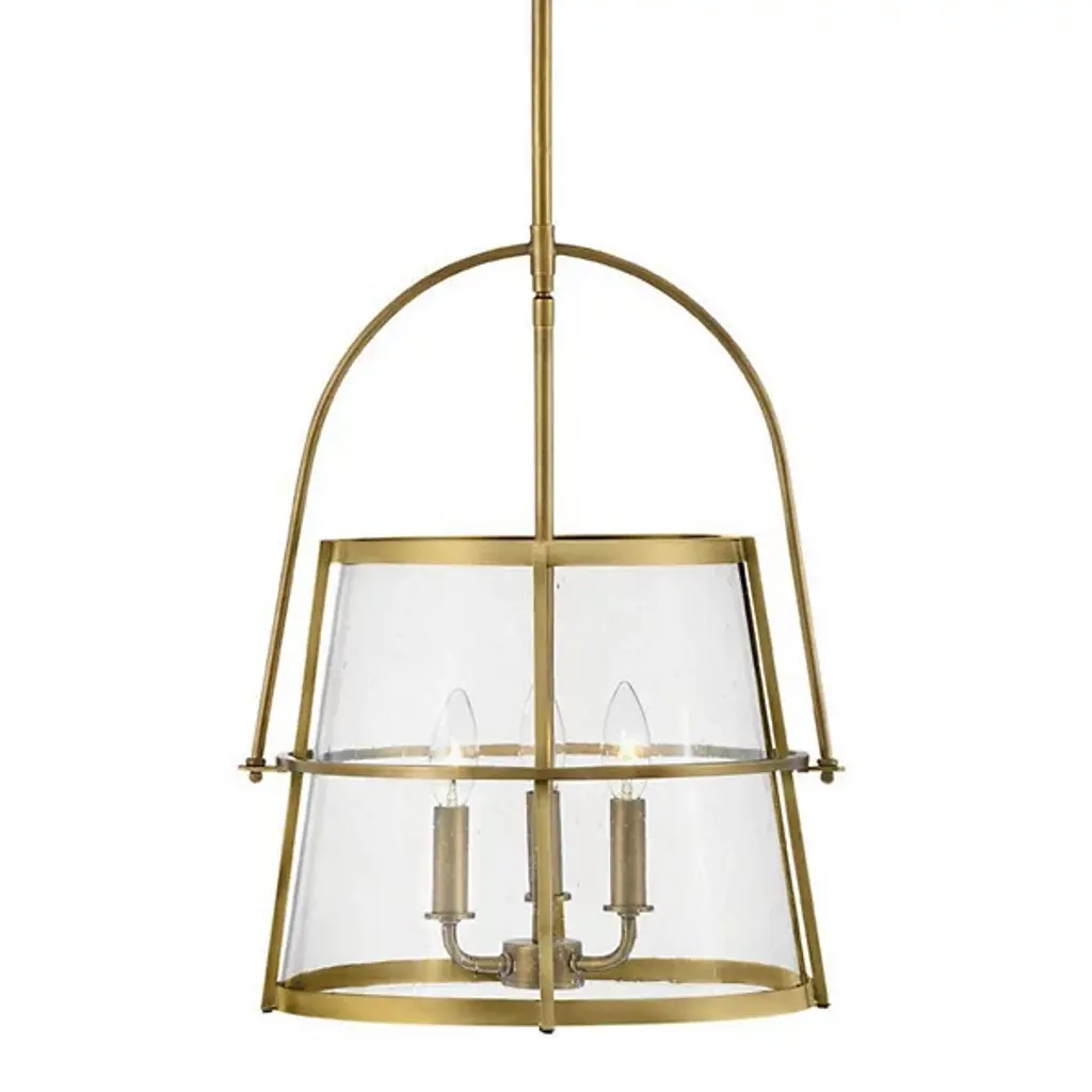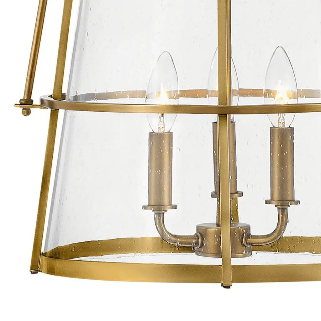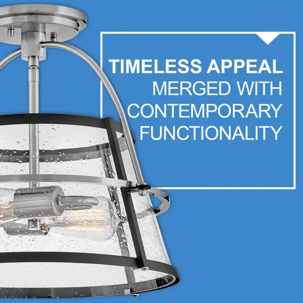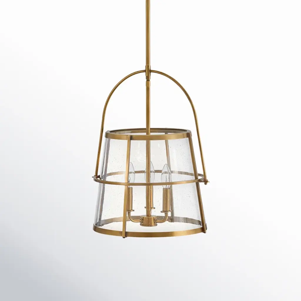 Eralia merges timeless appeal with contemporary functionality. The steel frame holds the clear seedy glass shade surrounding the bulbs within. An oversized yoke completes the mid-century modern design