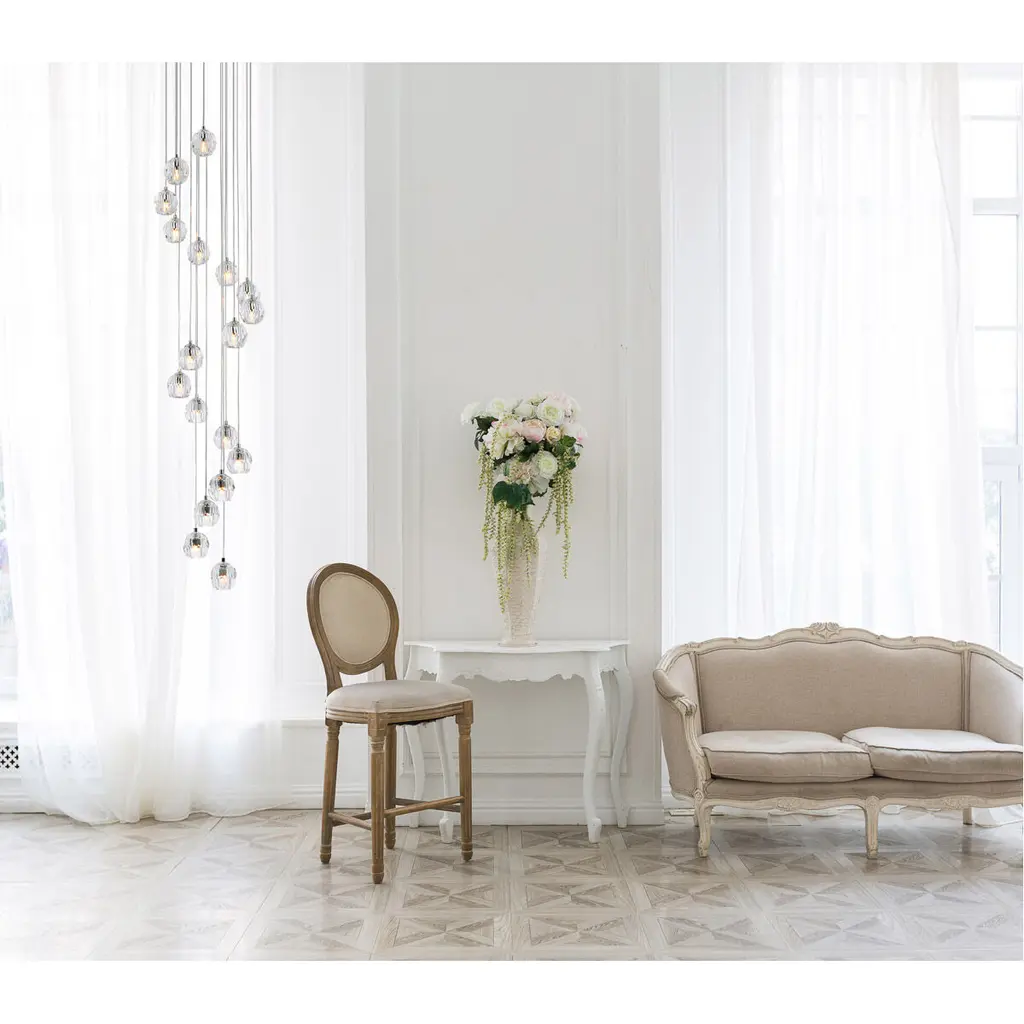 Like enchanting bubbles of air surfacing from the fathoms of the deep sea, the Eren contemporary hanging pendant adds lighting with richness and grace. The layering of clear crystal globes offer softened, harmonious light to match a variety of home décor. Creating an environment of sophistication, this beautiful hanging pendant adds drops of magic to express your refined style.