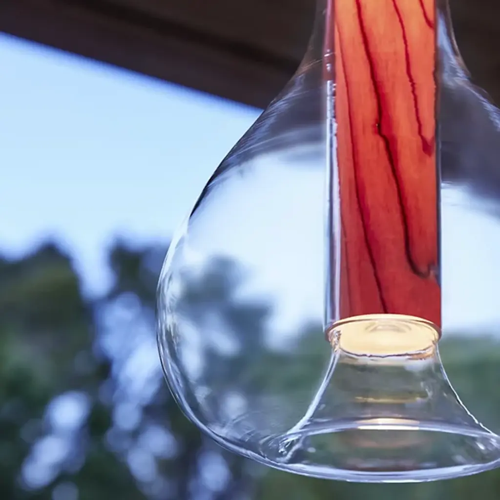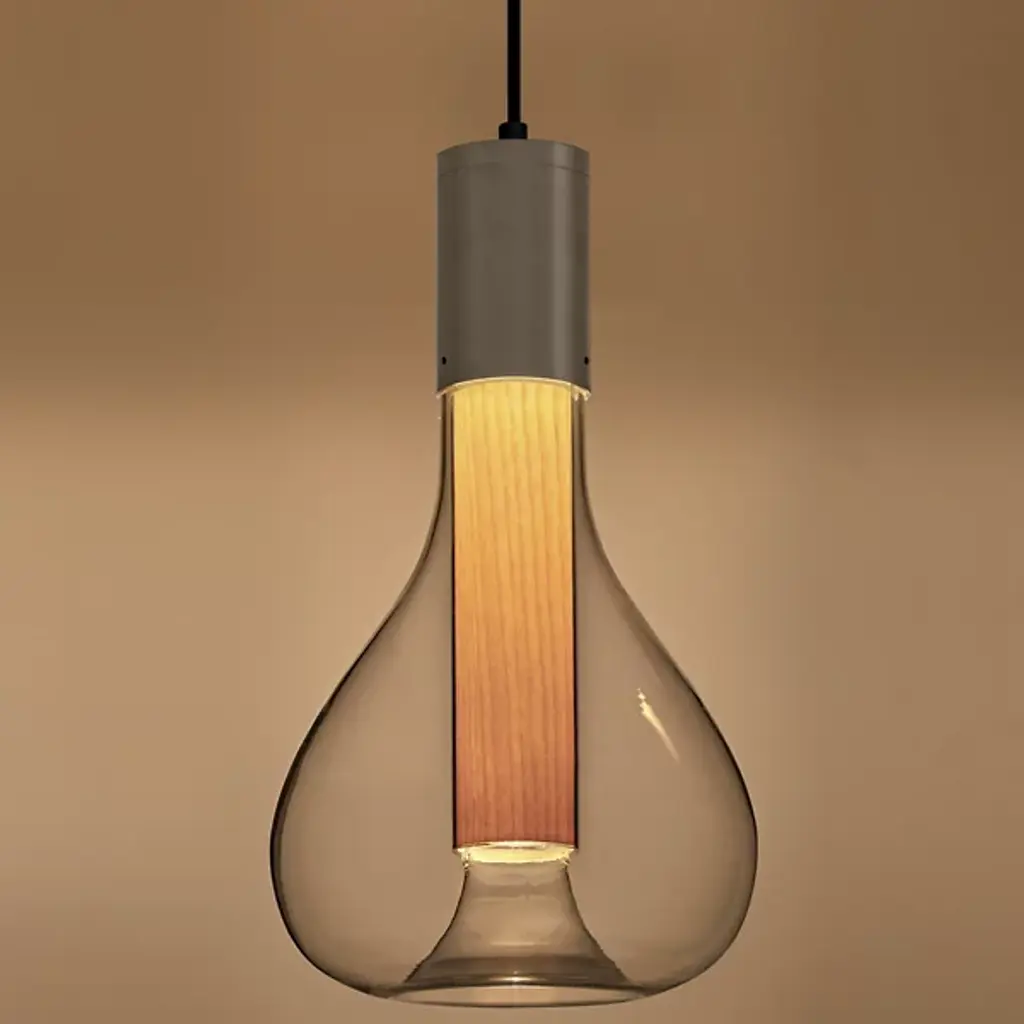 Add that perfect touch of ambiance to your favorite space with the Eris Mini Pendant from LZF. Designed by Mayice Studio in 2020, this beautiful modern piece exemplifies the use of mixed materials with an elegant and engaging silhouette. Smooth metal makes up the brief cylindrical lamp base as it hangs from a single delicate cord. Wood veneer replaces the metal, extending deep into a bulbous clear glass shade that encloses around it. An integrated LED within the base shines an atmospheric glow that adds depth and ambiance to the space.