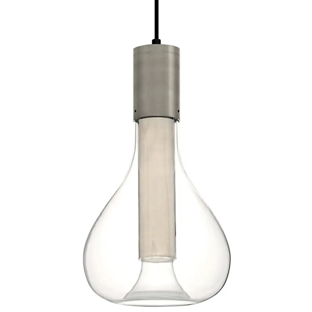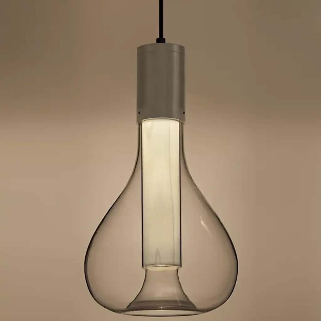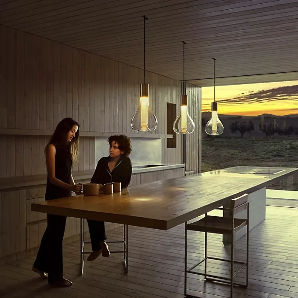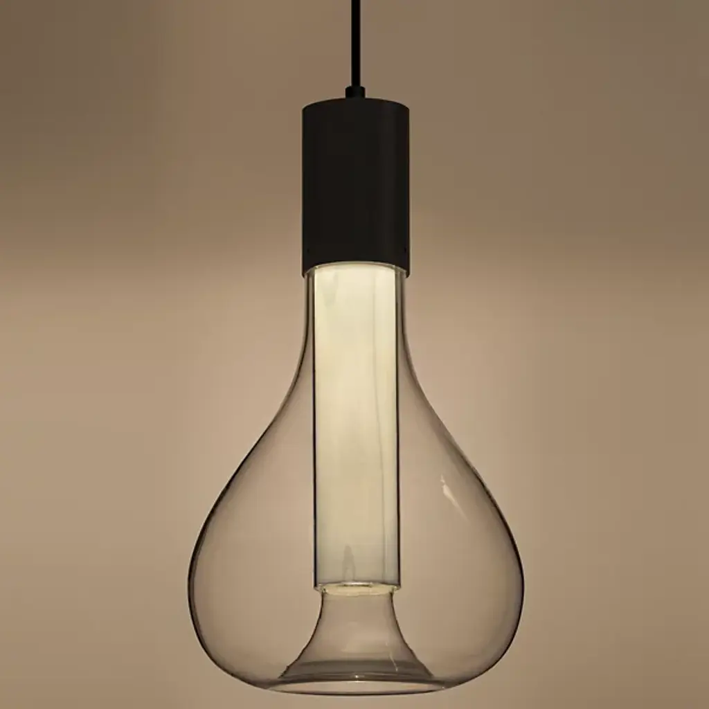Add that perfect touch of ambiance to your favorite space with the Eris Mini Pendant from LZF. Designed by Mayice Studio in 2020, this beautiful modern piece exemplifies the use of mixed materials with an elegant and engaging silhouette. Smooth metal makes up the brief cylindrical lamp base as it hangs from a single delicate cord. Wood veneer replaces the metal, extending deep into a bulbous clear glass shade that encloses around it. An integrated LED within the base shines an atmospheric glow that adds depth and ambiance to the space.