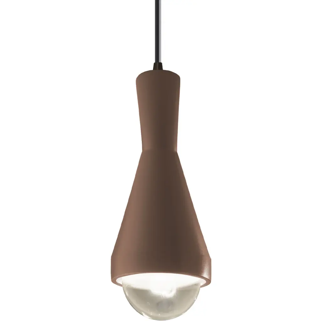 The Erlen Mini Pendant by Justice Design Group brings a glimmer of futuristic design into your interior home environment. Featuring hand-cast, hand-textured ceramic in a teardrop shape, the Erlen Mini Pendant combines a retro silhouette (that of an Erlenmeyer flask) with a modern globe bulb that catches the eye. Hang the Erlen Mini Pendant over a dining table in multiples, over a kitchen sink or in a neat row above a kitchen island or countertop.