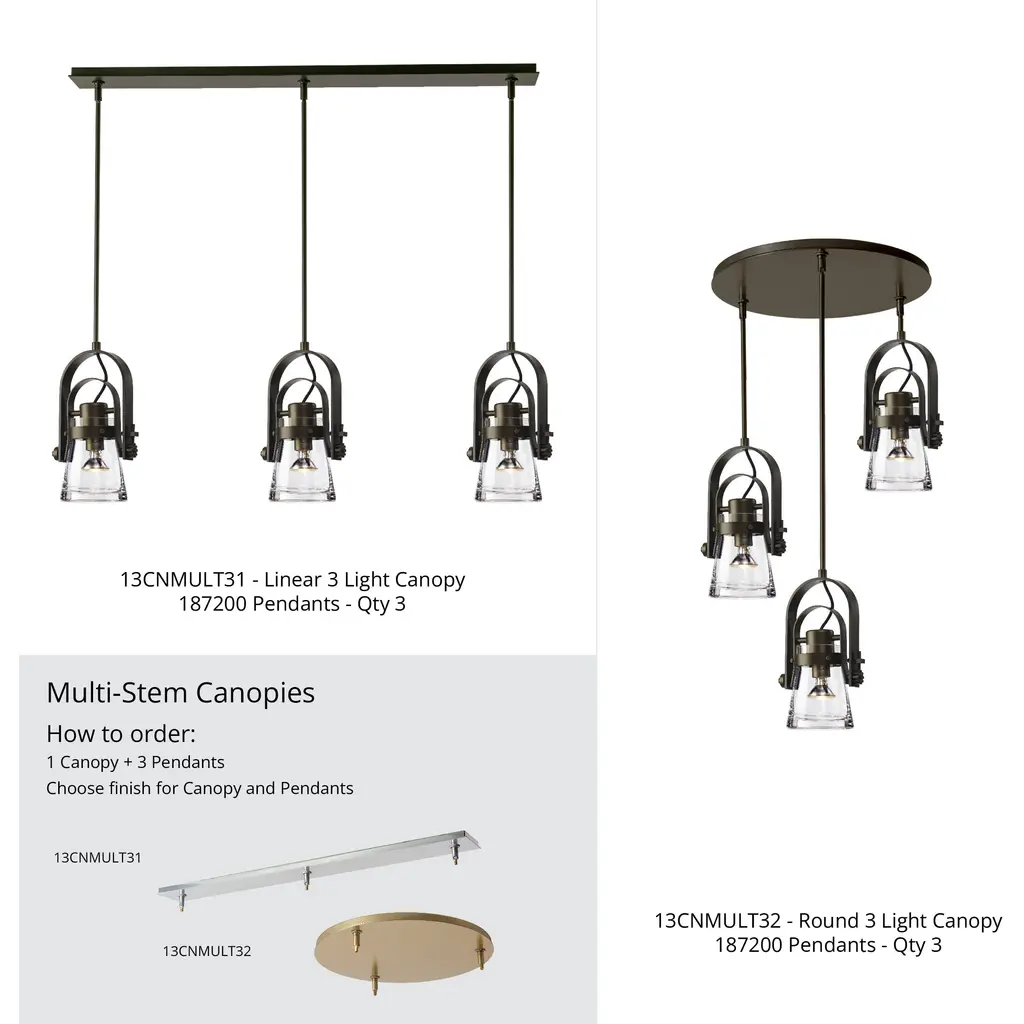 Inspired by the flat-bottomed Erlenmeyer flask, this pendant's blown-glass flask is encircled by a handcrafted steel collar fixed to an arch within an arch. The light's angle can be adjusted with the steel cog locked by a hand-wrought nail.