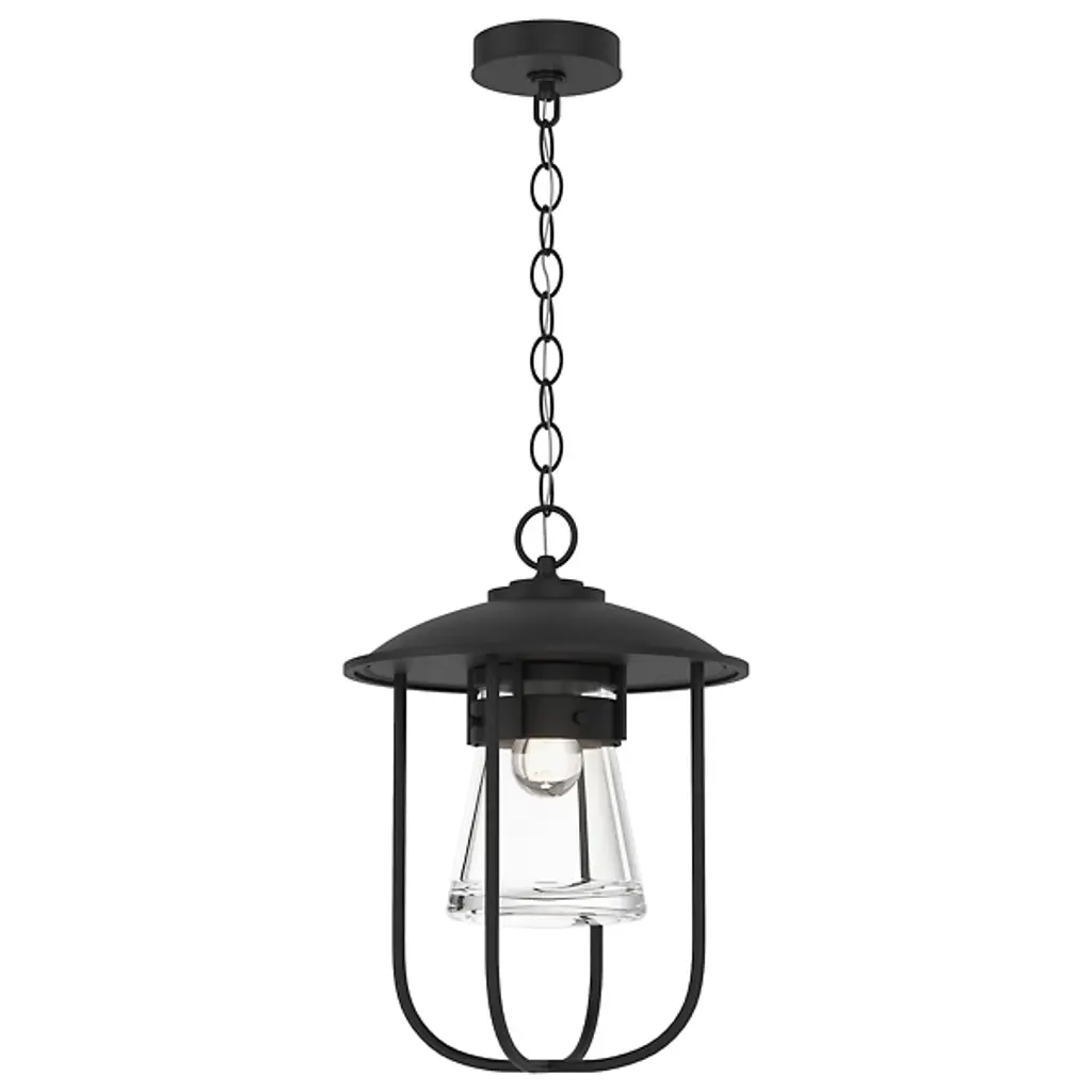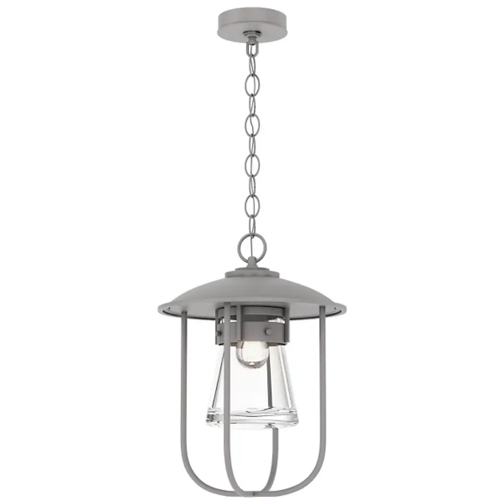 Inspired by New England coastlines, the Erlenmeyer Outdoor Pendant from Hubbardton Forge adds a nautical flair to any outdoor space. This pendant features a thick glass flask-shaped shade and a strong metal cage. A UL damp rating allows for use in virtually any climate and a resistant coastal finish combats even the harshest of weather. Each piece is made to order and handcrafted by artisans in Vermont.