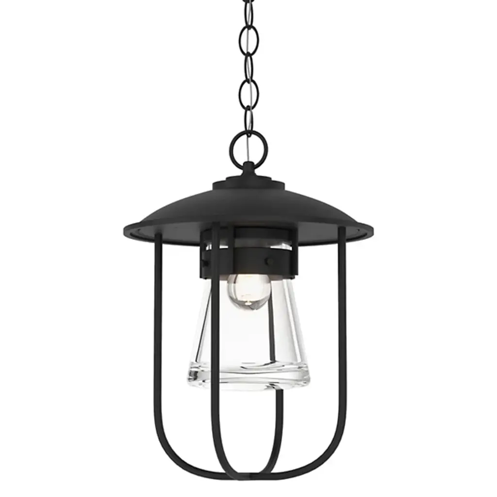 Inspired by New England coastlines, the Erlenmeyer Outdoor Pendant from Hubbardton Forge adds a nautical flair to any outdoor space. This pendant features a thick glass flask-shaped shade and a strong metal cage. A UL damp rating allows for use in virtually any climate and a resistant coastal finish combats even the harshest of weather. Each piece is made to order and handcrafted by artisans in Vermont.