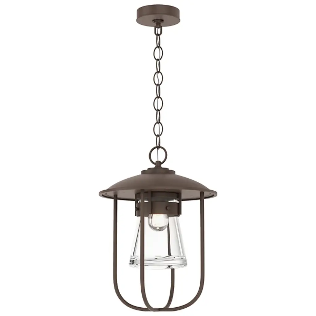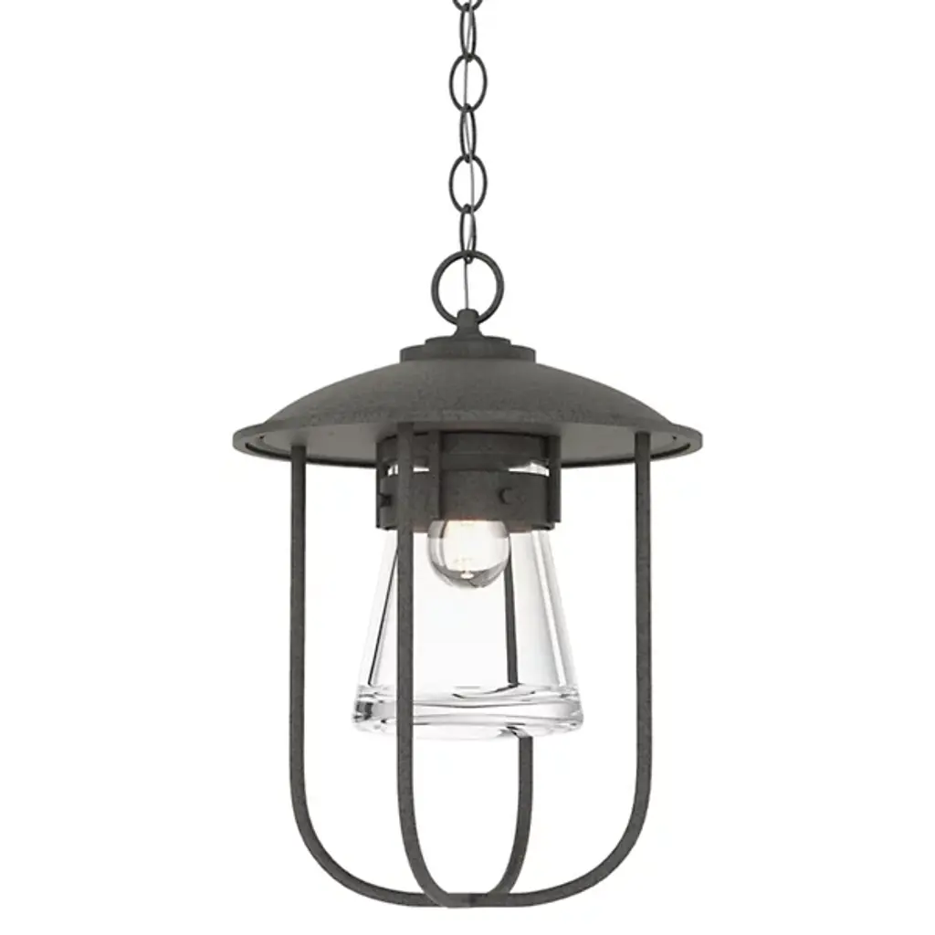 Inspired by New England coastlines, the Erlenmeyer Outdoor Pendant from Hubbardton Forge adds a nautical flair to any outdoor space. This pendant features a thick glass flask-shaped shade and a strong metal cage. A UL damp rating allows for use in virtually any climate and a resistant coastal finish combats even the harshest of weather. Each piece is made to order and handcrafted by artisans in Vermont.
